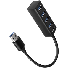 Universal four-port USB 3.2 Gen 1 hub. Connector for external power supply. USB-A cable 30 cm.