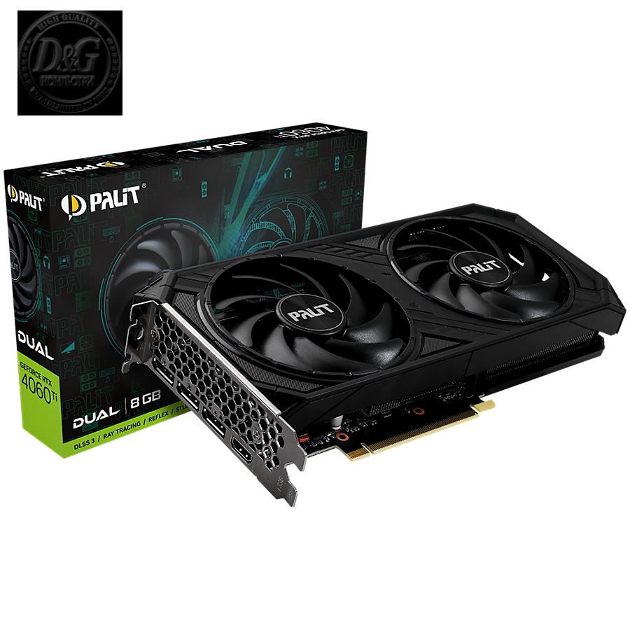 Palit RTX 4060Ti Dual 8GB GDDR6, 128 bits, 1x HDMI 2.1, 3x DP 1.4a, two fan, 1x 8-pin Power connector, recommended PSU 650W, NE6406T019P11060D