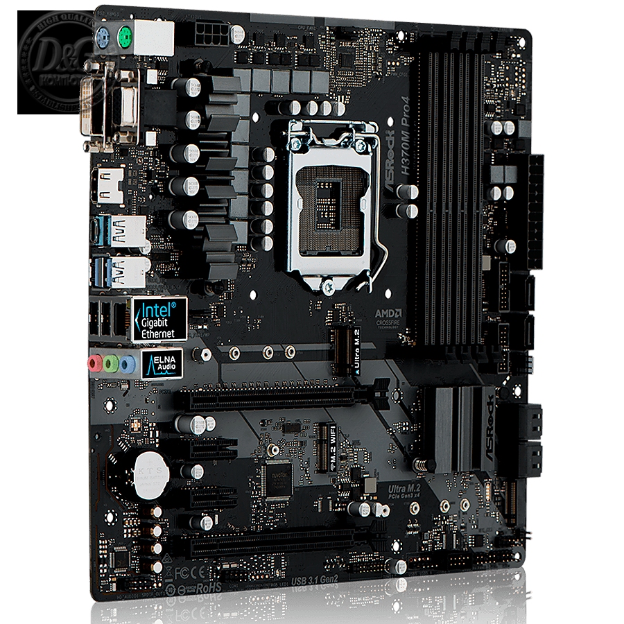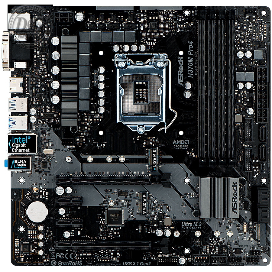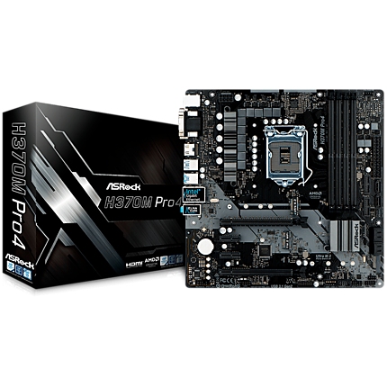 ASROCK Main Board Desktop H370 (S1151, 4xDDR4,2xPCIe x16,2xPCI Ex1, 6 SATA3 ,1x Ultra M.2, GLAN,VGA,DVI,HDMI,USB 3.1 ) mATX retail