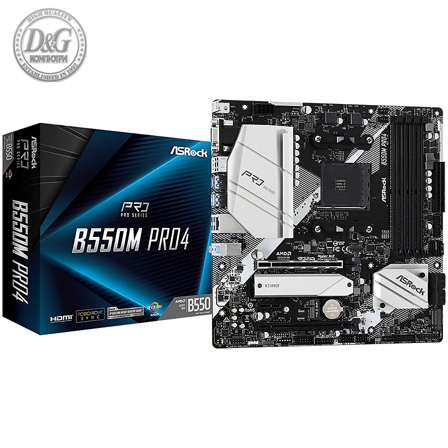 ASROCK Main Board Desktop B550M PRO4 (AM4, 4xDDR4,2xPCIe x16,2xPCI Ex1, 6 SATA3 , M.2, DP,HDMI,D-Sub, USB 3.2, mATX retail)