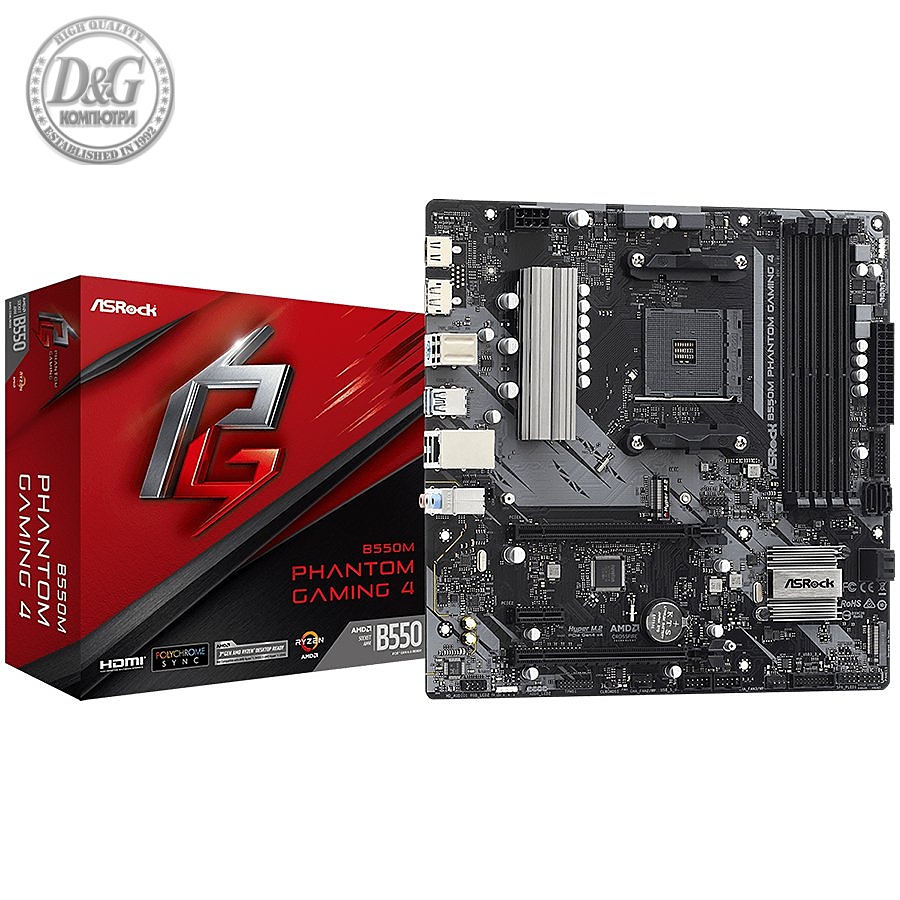 ASROCK Main Board Desktop B550M PHANTOM GAMING 4 (AM4, B550, 4xDDR4, 1xPCIe 4.0 x16, 1xPCI 3.0x16, 1xPCIe 3.0x1, 4xSATA, 1xM.2 PCIe Gen4x4, 1xM.2, 8xUSB3.2 Gen1, 6xUSB2.0, HDMI, DP, GLAN, mATX, Retail)