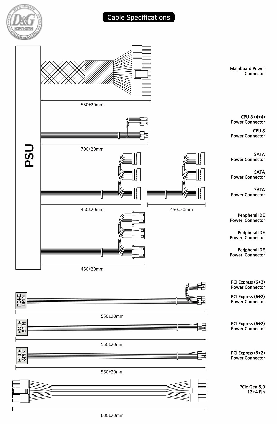 | КОНЕКТОРИ | PCI-E Gen5 12VHPWR x 1 PCI-Express 6+2 pin x 4 SATA x 6 Molex x 3 4+4 Pin ATX/EPS x 2 20+4 Pin ATX x 1 |