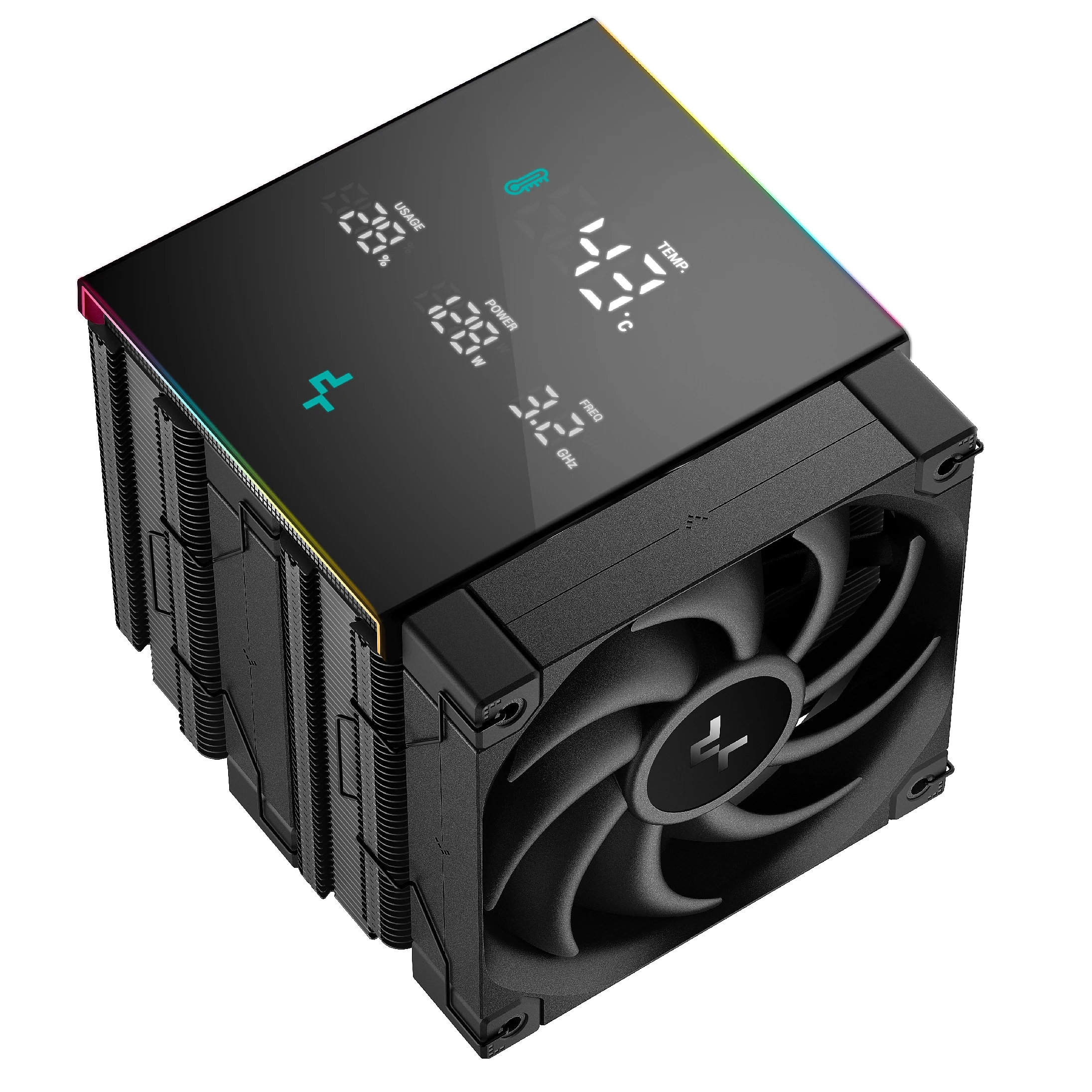 | ДОПЪЛНИТЕЛНИ | Upgrade to DeepCool`s newest Core Touch Technology 2.0 dramatically improves cooling capacity Upgraded to the newly designed FT12 SE fans Subtle ARGB strips at two of the top panel edges Multi-data point screen, visual color temperature warnings |