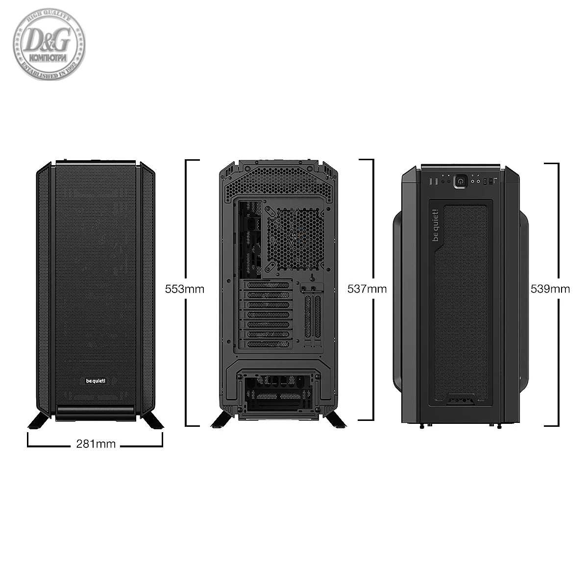 | ДОПЪЛНИТЕЛНИ | 3 Pure Wings 2 140mm fans Extra thick insulation mats for improved noise reduction State-of-the-art I/O-panel with fan controller and USB 3.2 Gen. 2 Type C Decoupled motherboard tray can be relocated for an inverted layout Detachable top bracket ensures easy installation of radiators and fans Ready for radiators up to 420mm |