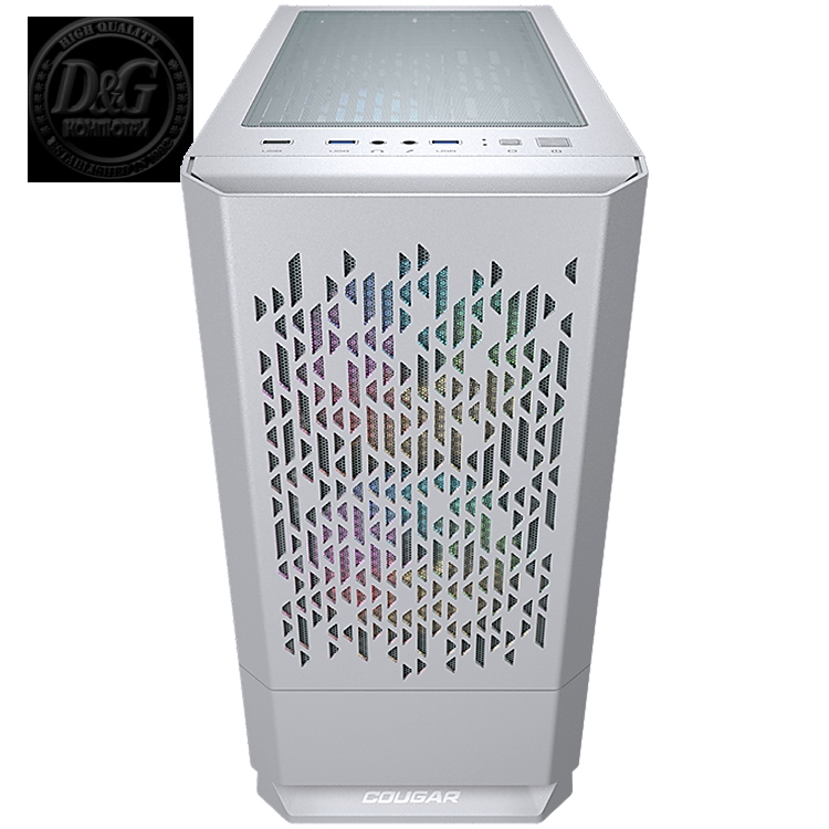 COUGAR MG140 Air RGB - White, Mini Tower, Mini ITX / Micro ATX, USB 3.0 x 2, USB 2.0 x 1, Mic x 1 / Audio x 1, RGB Button, 3x 120mm ARGB fans pre-installed, Built-in LED controller, Patterned Air Vents, 205 x 410 x 420 (mm)