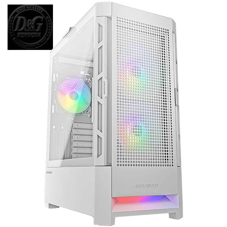 COUGAR Airface RGB White, Mid Tower, 2x 140 1x120 ARGB Fans, RGB Button, 4mm Tempered Glass, Mini ITX / Micro ATX / ATX / CEB/ E-ATX, USB 3.0 x 2, USB 2.0 x 1, 4 Pole Headset Audio Jack x1