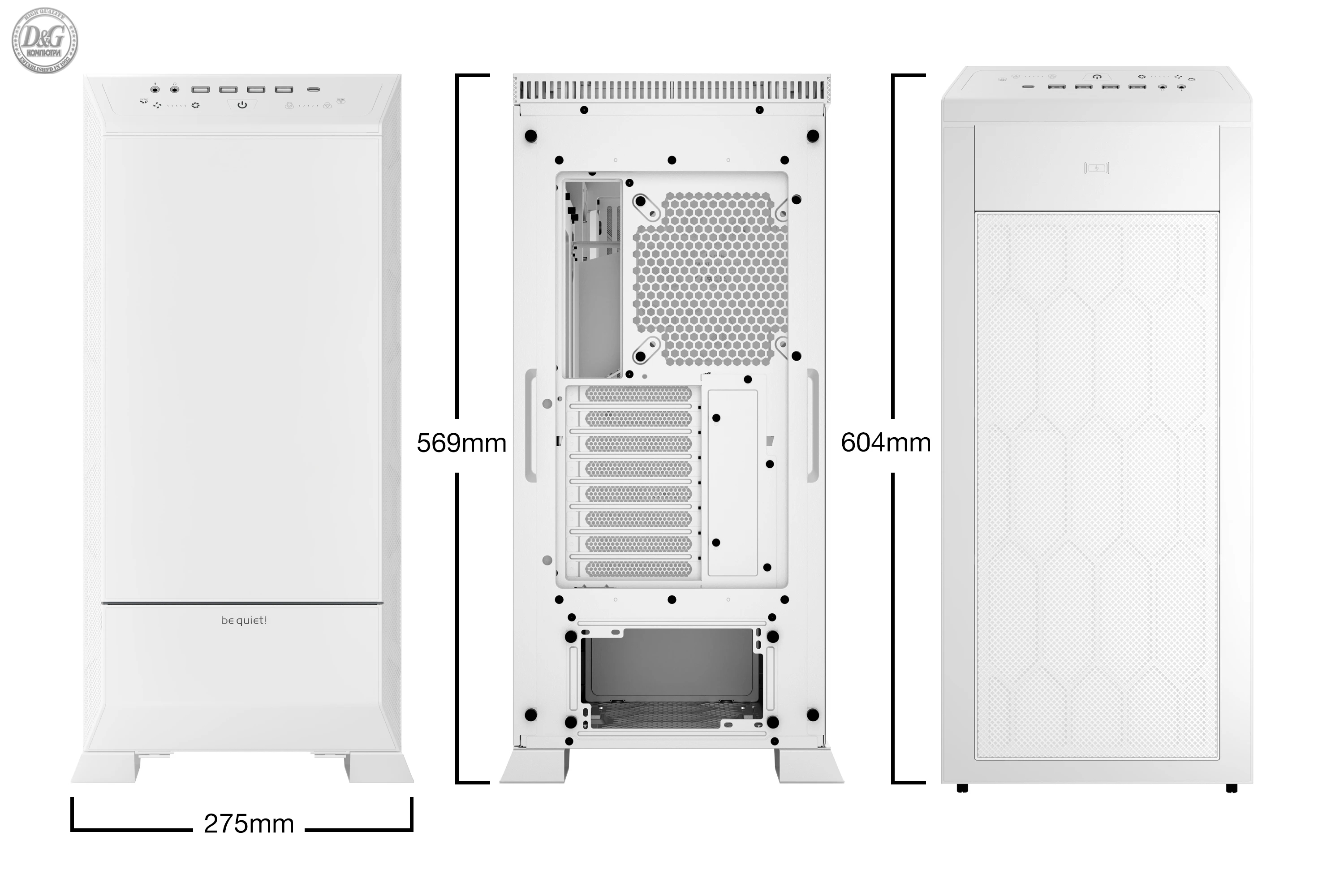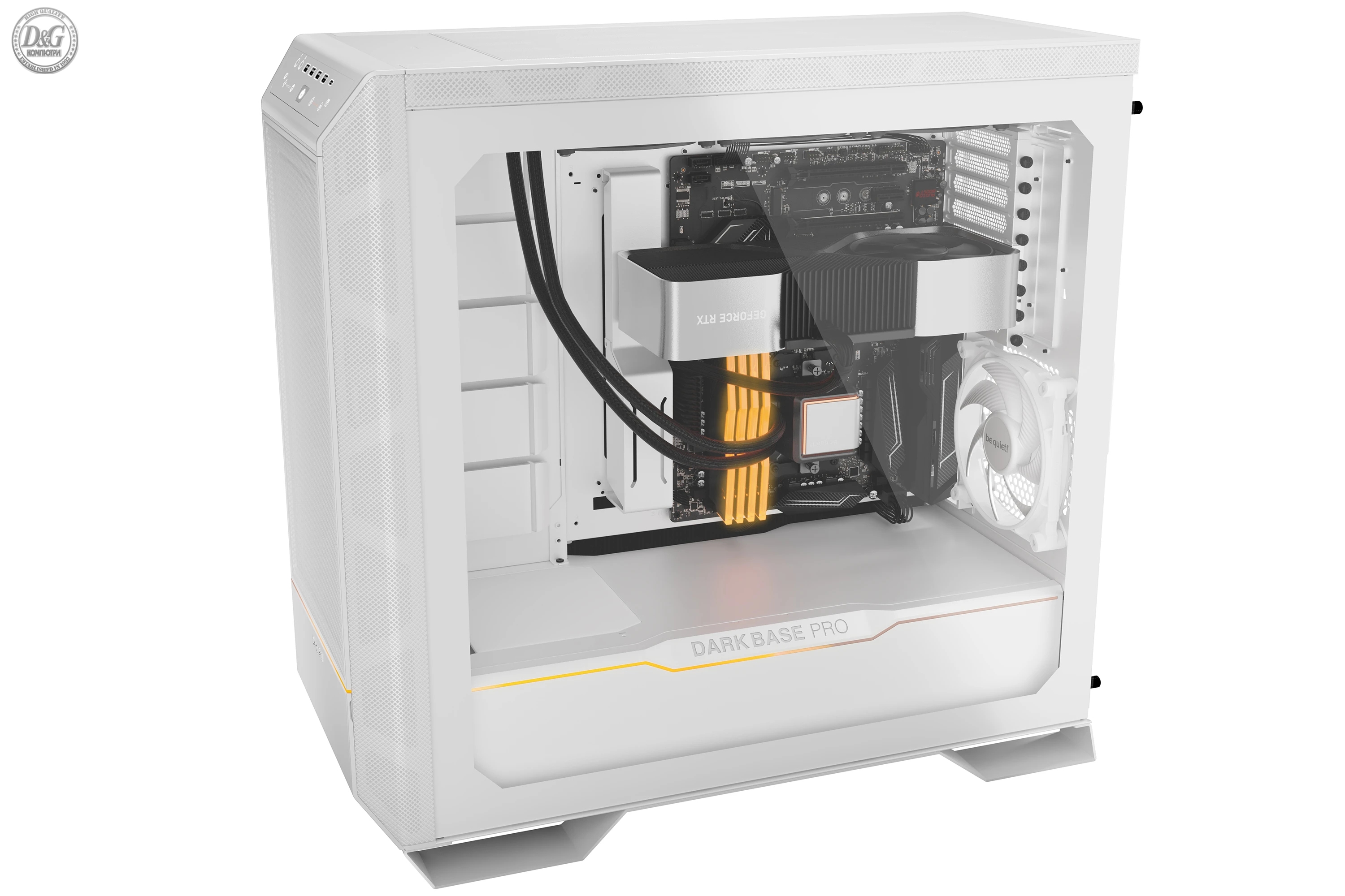 | ДОПЪЛНИТЕЛНИ | 3 Silent Wings 4 PWM fans for a virtually inaudible operation and high performance Touch-sensitive I/O panel for state-of-the-art operation Generous dimensions ensure operation of E-ATX motherboards and radiators up to 420mm Subtle ARGB lighting in the front and the PSU Shroud |