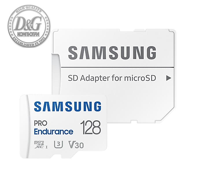 Samsung 128 GB micro SD PRO Endurance, Adapter, Class10, Waterproof, Magnet-proof, Temperature-proof, X-ray-proof, Read 100 MB/s - Write 40 MB/s