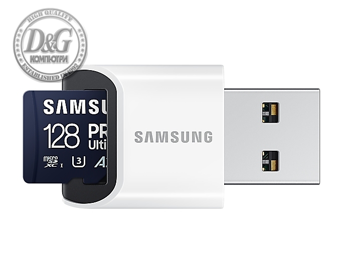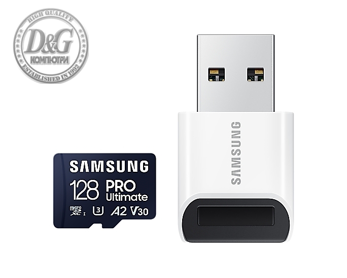 Samsung 128GB micro SD Card PRO Ultimate with USB Reader , UHS-I, Read 200MB/s - Write 130MB/s, U3, V30, A2