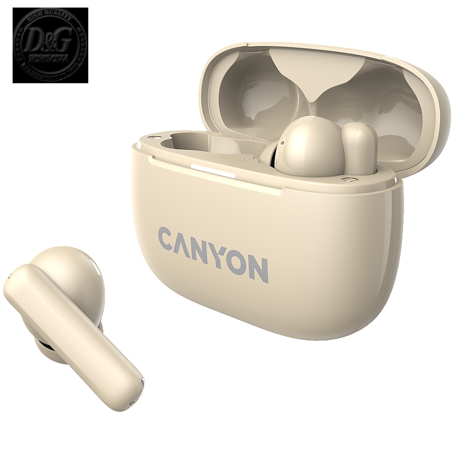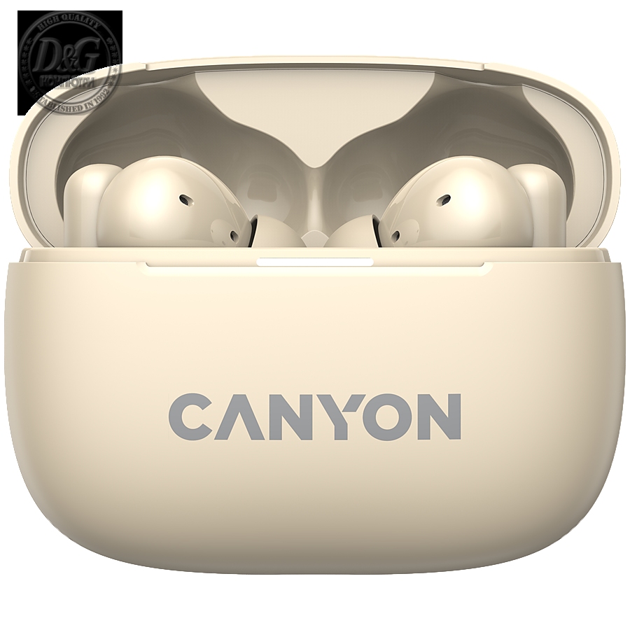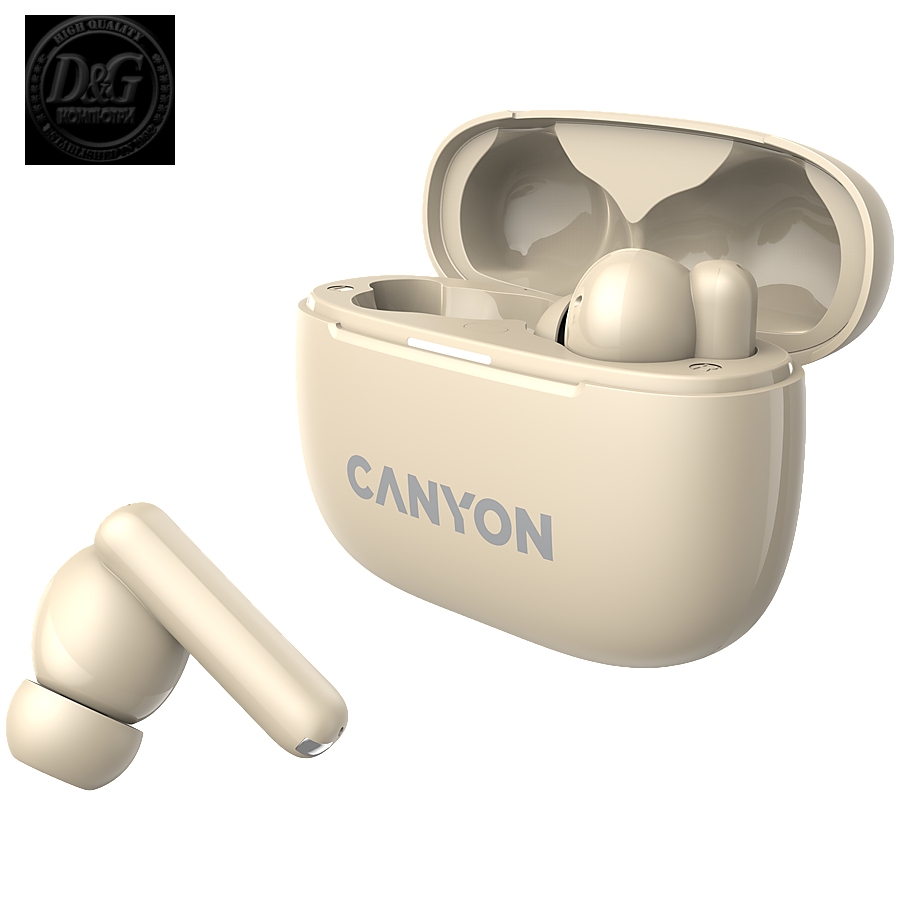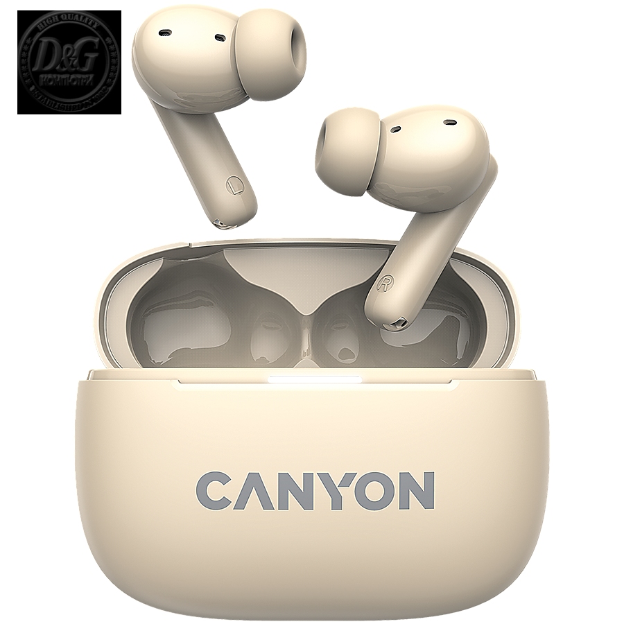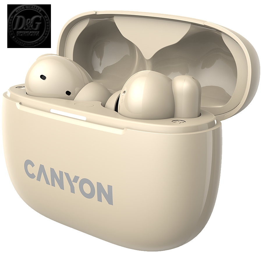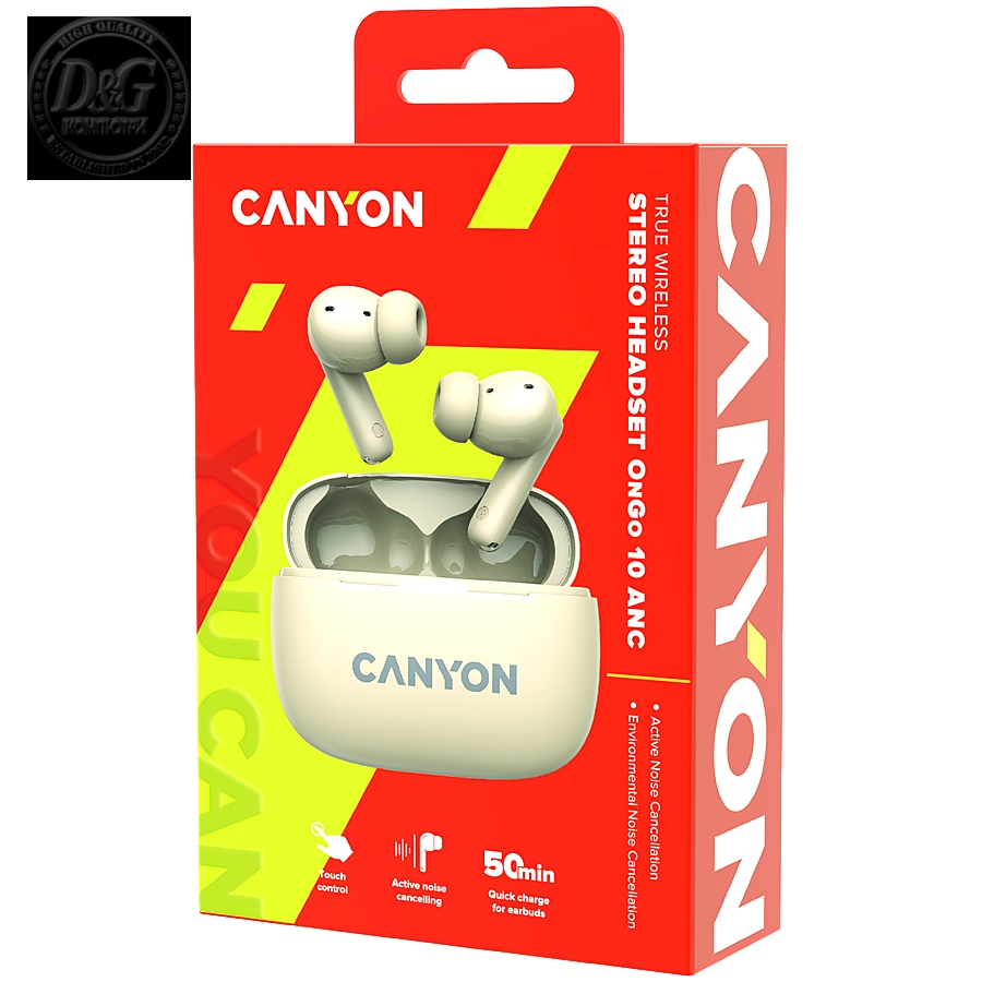 CANYON OnGo TWS-10 ANC+ENC, Bluetooth Headset, microphone, BT v5.3 BT8922F, Frequence Response:20Hz-20kHz, battery Earbud 40mAh*2+Charging case 500mAH, type-C cable length 24cm,size 63.97*47.47*26.5mm 42.5g, Beige