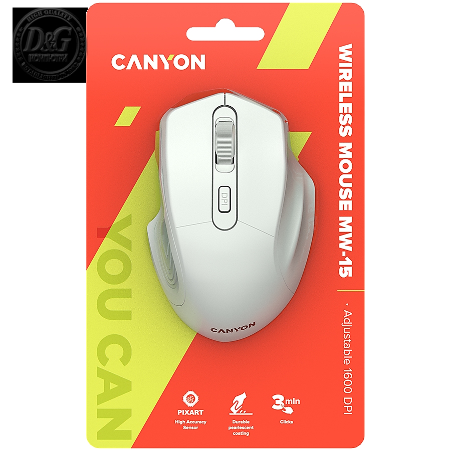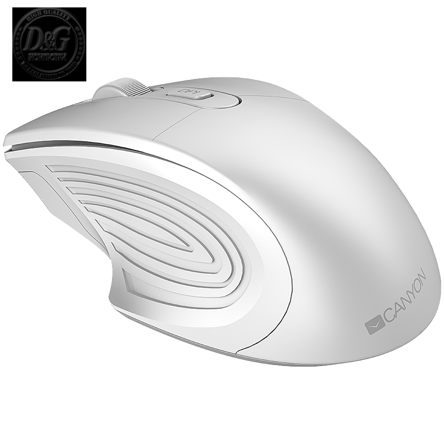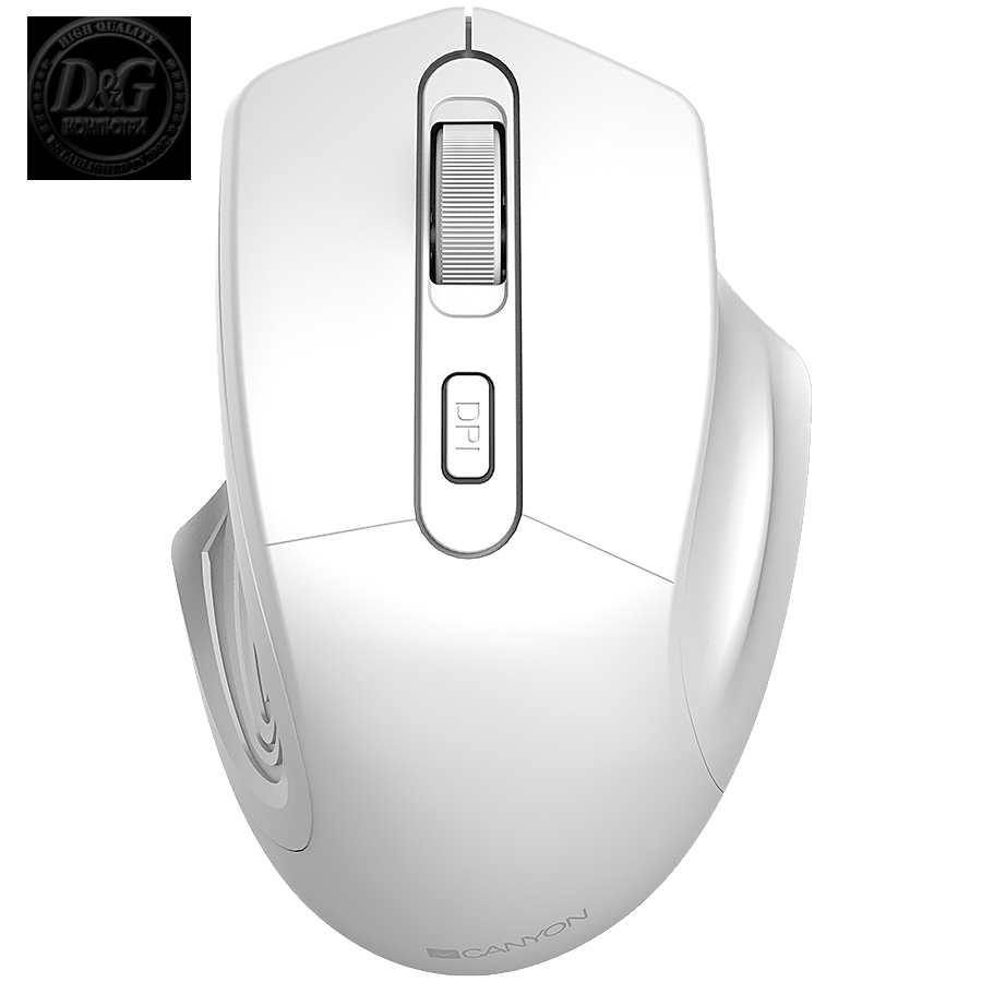 Canyon 6 buttons wireless 2.4Ghz mouse, MX8650A Sensor, DPI up to 1600,Injection case, 3 M life times left and right switches, 2xAAA battery, ABS material, Size: 105x71x40mm, Weight: 59g, white
