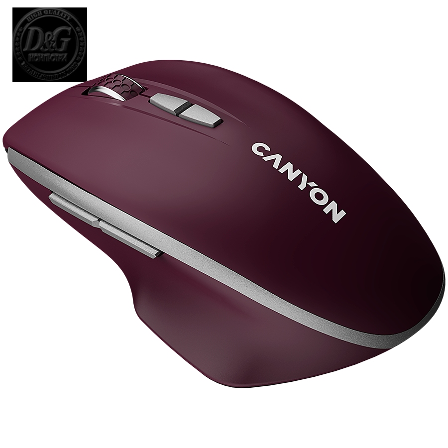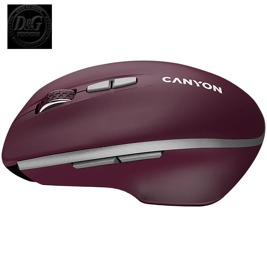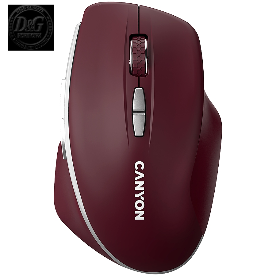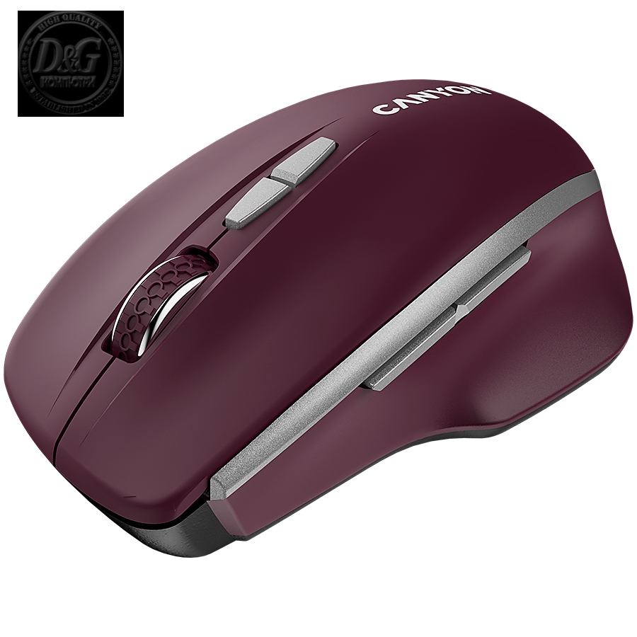 CANYON MW-21, 2.4 GHz Wireless mouse ,with 7 buttons, DPI 800/1200/1600, Battery: AAA*2pcs,Burgundy Red,72*117*41mm, 0.075kg