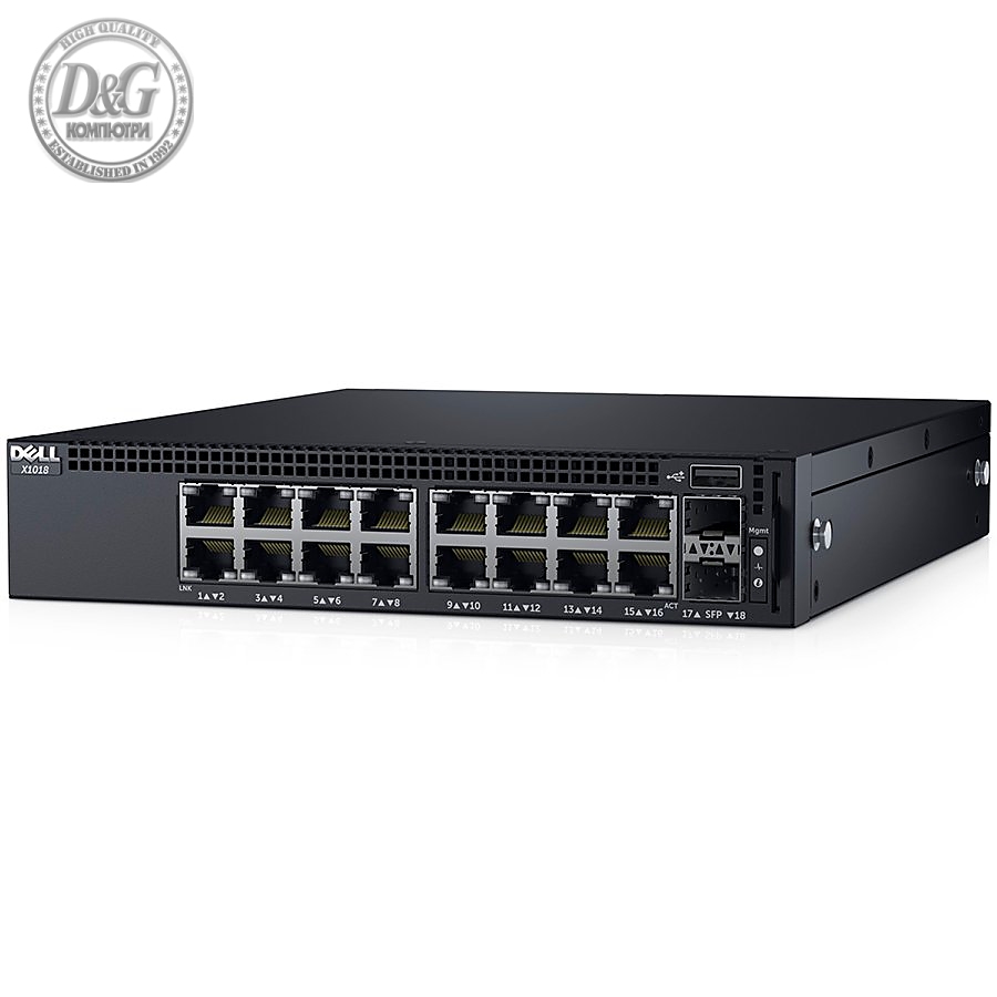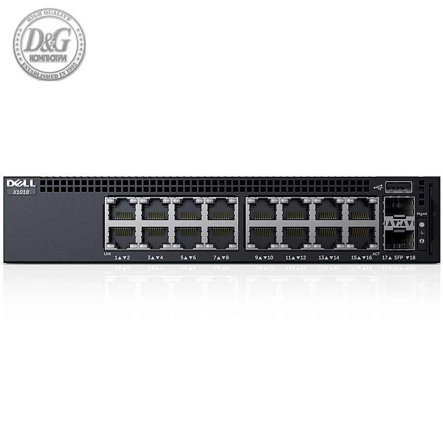Dell Networking X1018 Smart Web Managed Switch, 16x 1GbE and 2x 1GbE SFP ports