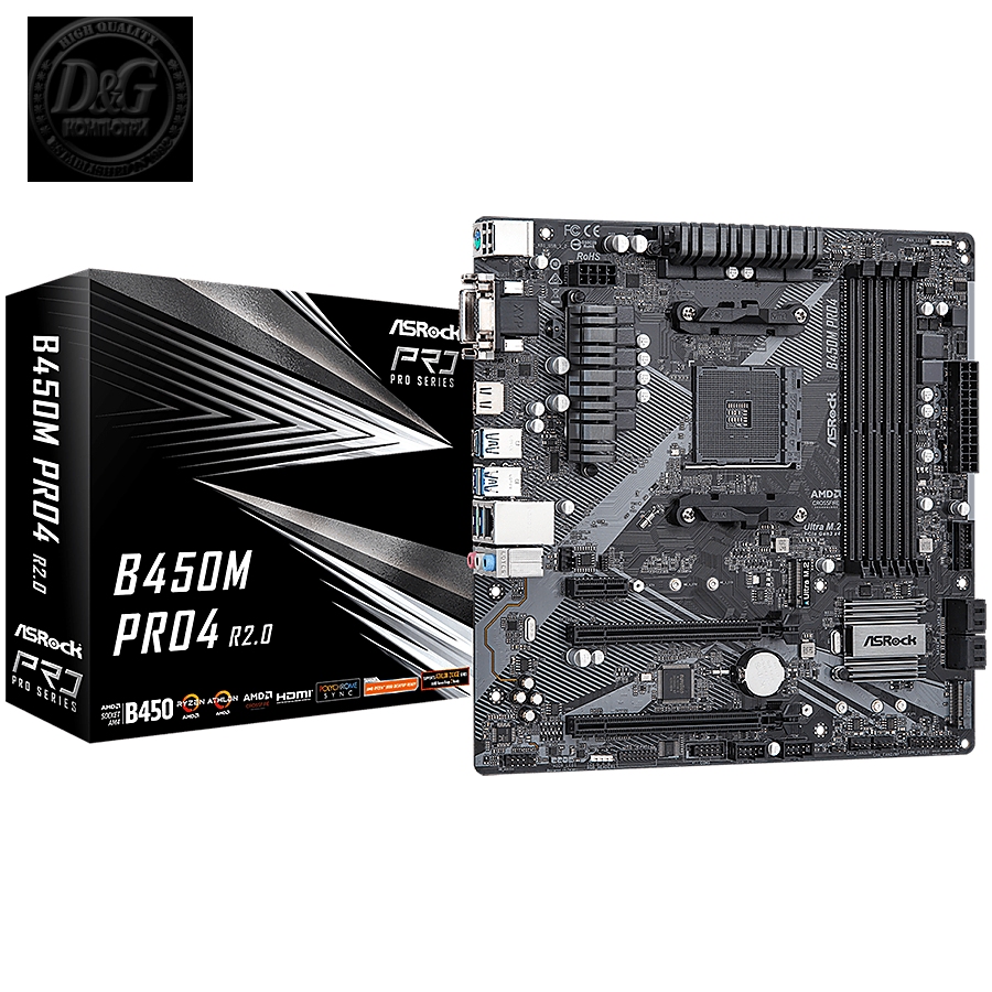 ASROCK Main Board Desktop B450M PRO4 (AM4, 4xDDR4, 1x PCIe 3.0 x16, 1x PCIe 2.0 x16, 1x PCIe 2.0 x1, 4x SATA III, RAID 0,1,10, 1x Ultra M.2 PCIe Gen3 x4, 1x M.2 SATA3, 1x COM Port header, 8x USB 3.0, GLAN, VGA, HDMI, DVI) mATX, Retail