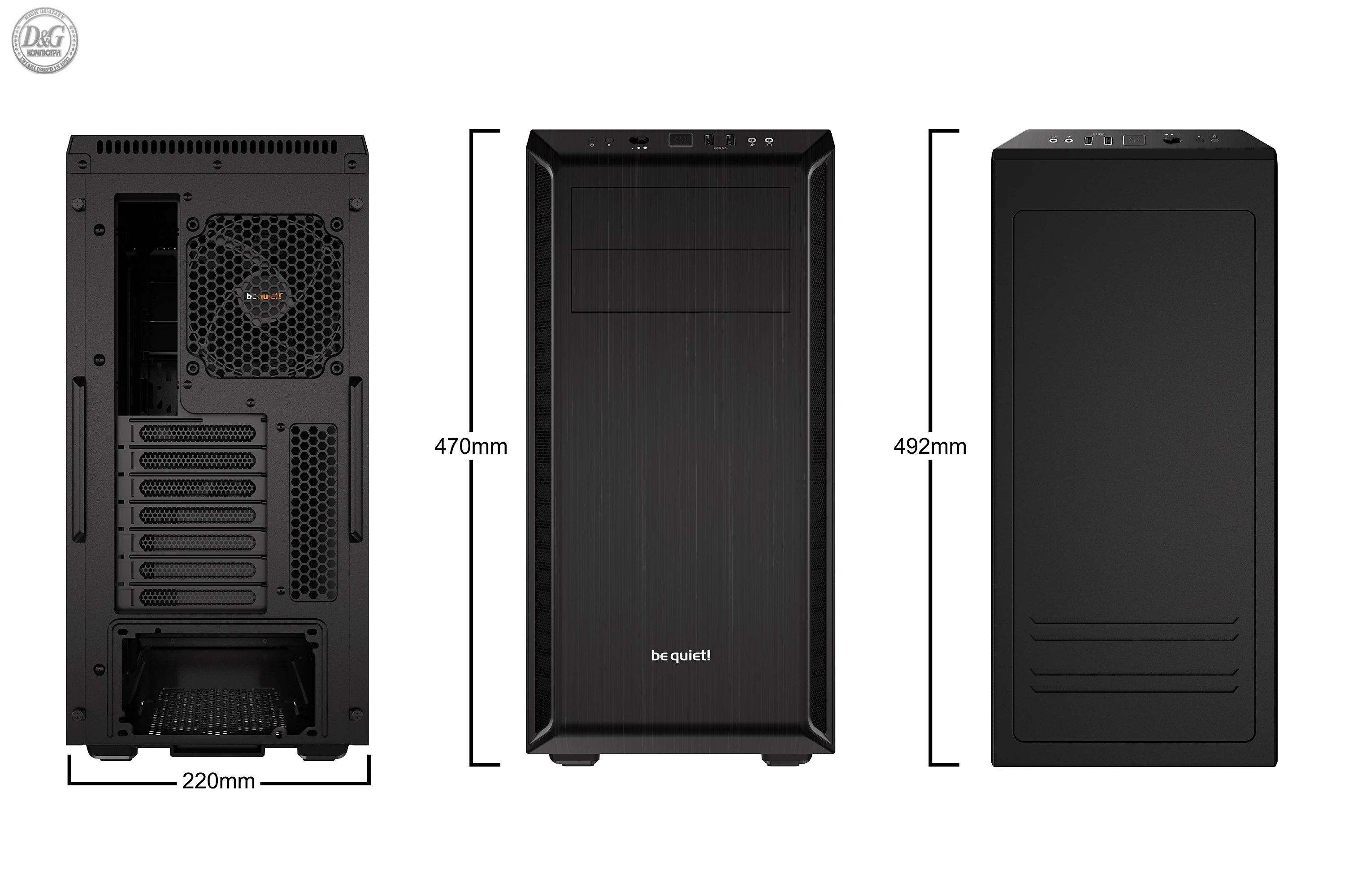 | ДОПЪЛНИТЕЛНИ | 2 pre-installed be quiet! Pure Wings 2 fans Completely sound insulated with dampening material in all relevant places Highly versatile, with repositionable HDD slots and a removable ODD cage Adjustable top cover vent with enhanced cooling options and mounting location for a radiator |