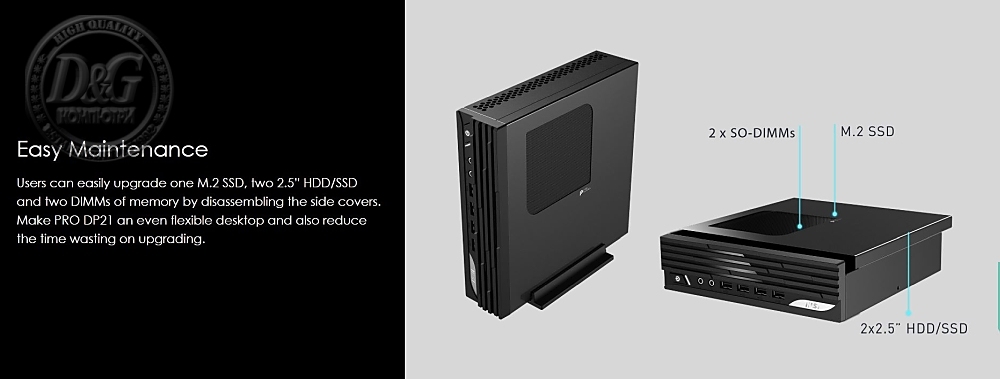 MSI PRO DP21, 11MA-218EU, i7-11700, Intel H510, Intel UHD Graphics, SO-DIMM DDR4 8GB (up to 64GB), 512GB M.2 PCIe SSD, 1x M.2 SSD, 2x 2.5", Intel AC 9462 WiFi M.2, COM port, Windows 11 Pro, 120W Adapter, 3 Year Warr., 1.27 Kg, VESA 100, 2.3 Liter, 120W