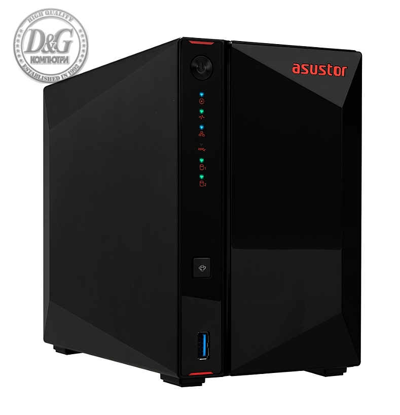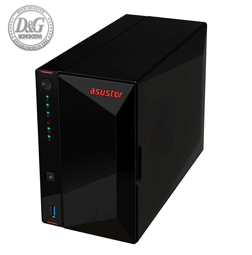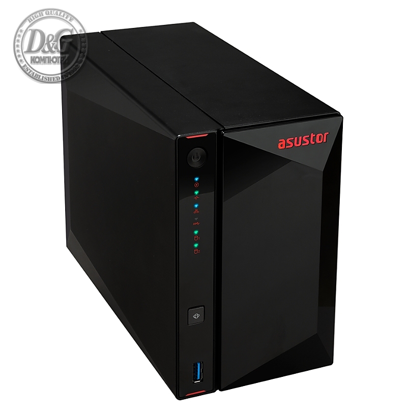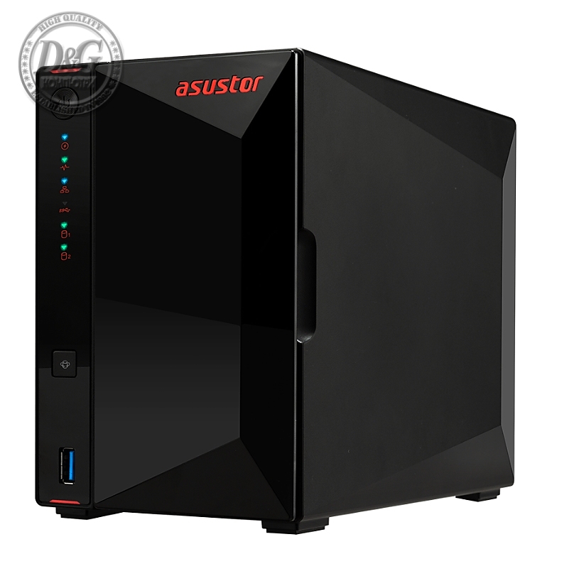 Asustor AS1202T, 2 bay NAS, Realtek RTD1619B, Quad Core, 1.7 GHz, 1GB DDR4 (not expandable), 2.5GbE x1, 3 x USB 3.2 Gen 1, WOW (Wake on WAN), System Sleep Mode, Black