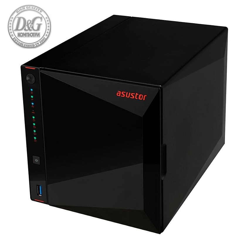 Asustor AS5304T, 4-Bay NAS, Intel Celeron J4105 Quad-Core 1.5 GHz (burst up 2.5 GHz), 4 GB SO-DIMM DDR4, 4x 2.5"/3.5" SATA3 HDD or SSD, 2x 2.5 GbE, 3x USB 3.2 Gen 1 Type A, WOW (Wake on WAN), WOL, System Sleep Mode, AES-NI hardware encryption
