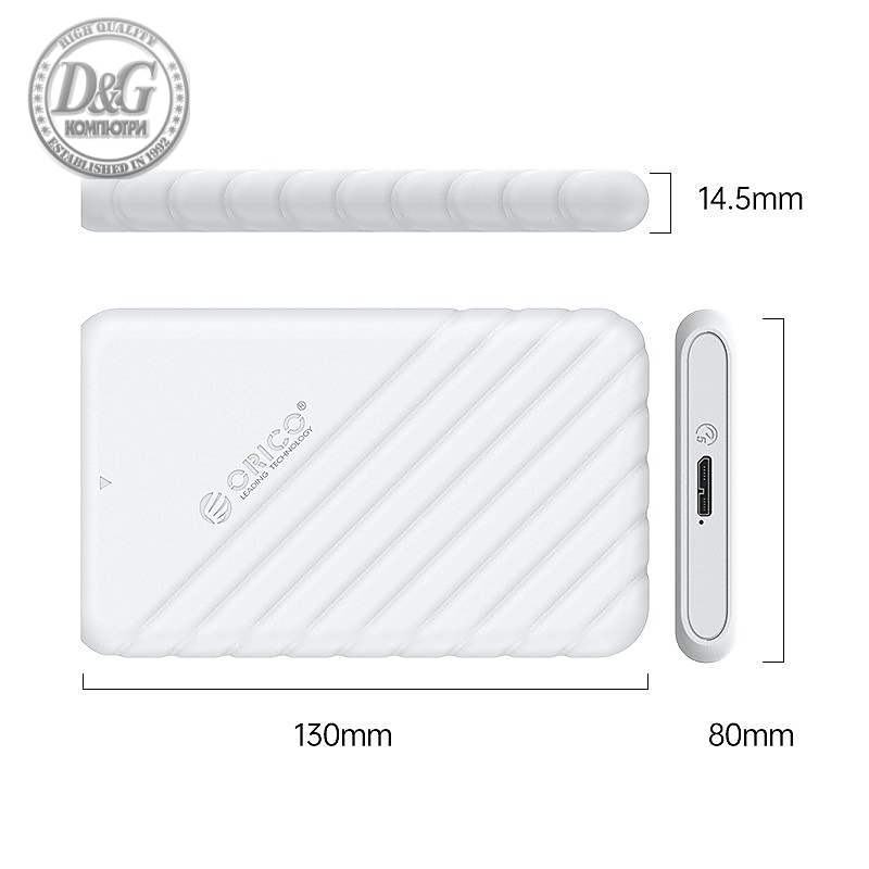 Orico кутия за диск Storage - Case - 2.5 inch USB3.0 WHITE - 25PW1-U3-WH
