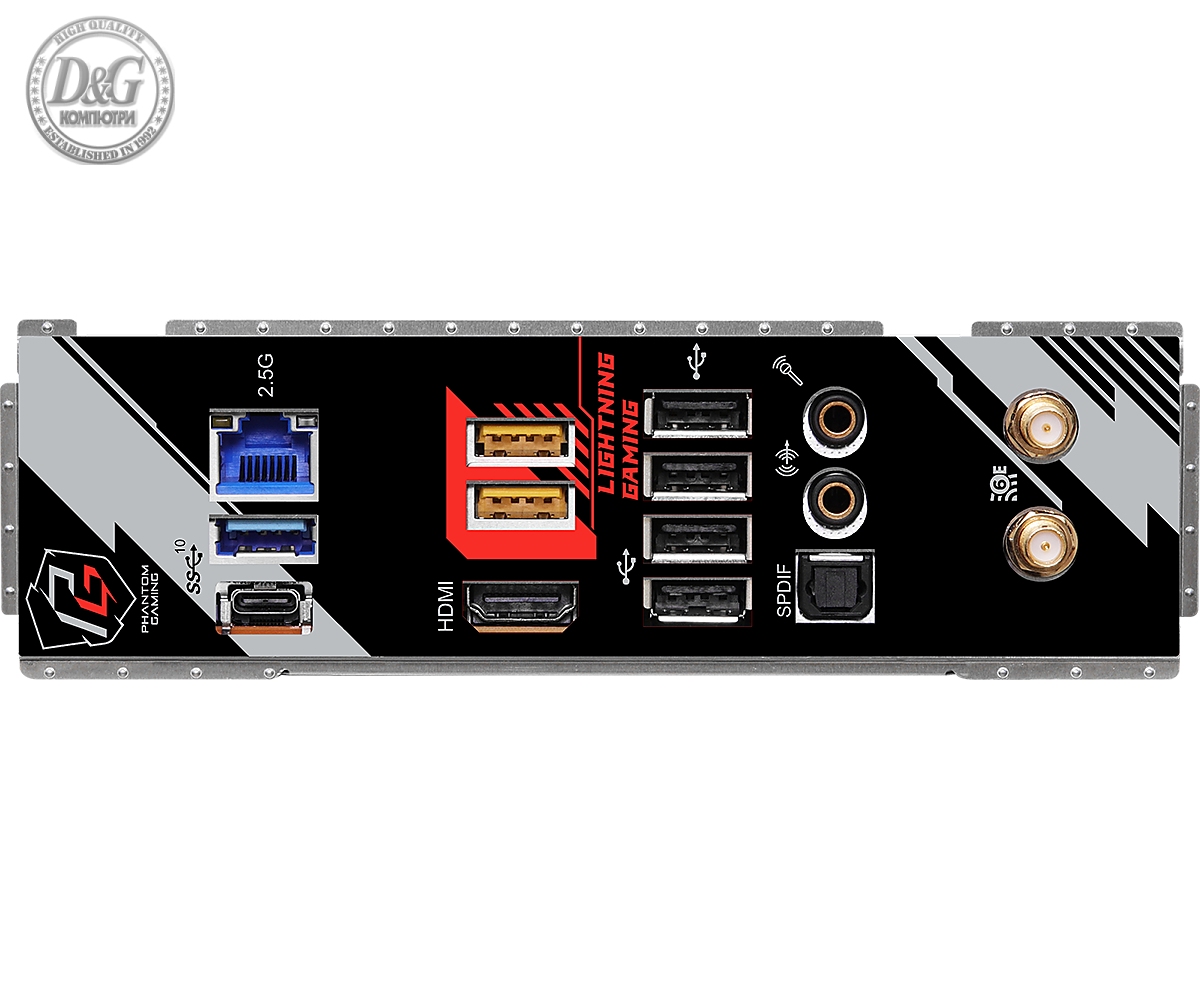 I/O: - 2 x Antenna Ports; - 1 x HDMI Port; - 1 x Optical SPDIF Out Port; - 3 x USB 3.2 Gen2 Type-A Ports (10 Gb/s) (USB32_23 are Lightning Gaming Ports.); - 1 x USB 3.2 Gen2 Type-C Port (10 Gb/s); - 4 x USB 2.0 Ports; - 1 x RJ-45 LAN Port; - 1 x Line Out Jack (Gold Audio Jack); - 1 x Microphone Input Jack (Gold Audio Jack)