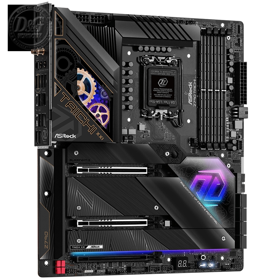 ASROCK MB Desktop Z790 Taichi, S1700, 4x DDR5, 2x PCIe 5.0 x16, 1x PCIe 4.0 x16, 4x Hyper M.2, 1x Blazing M.2, 1x Hyper M.2, 8x SATA3, 3x USB-C, 12x USB 3.2, 6x USB 2.0, 1x RJ-45 2.5GB Lan, 802.11ax Wi-Fi 6E + BT 5.3, 1x HDMI, 1x SPDIF, ATX