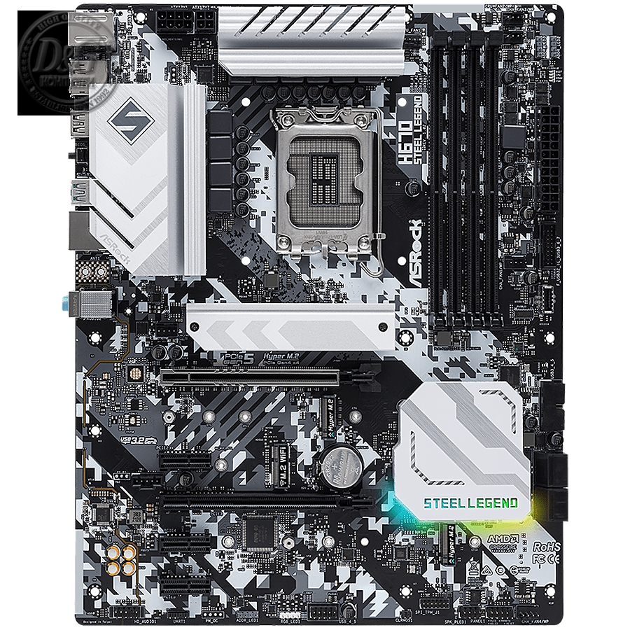 ASROCK Main Board Desktop H670 Steel Legend (S1700, H670, 4x DDR4, 2x PCIe x16, 3x PCIe x1, 4x SATA3 6.0Gb/s, 2x m.2 PCIe Gen4x4, RAID 0,1,5,10, 8x USB 3.2, 1x USB-C 1x RJ-45 2.5G Lan, HDMI, DP, ATX, Retail