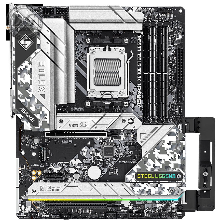 ASROCK MB Desktop X670E Steel Legend, AM5, 4x DDR5, 1x PCIe 5.0 x16, 1x PCIe 3.0 x16, 1x PCIe 3.0 x1, 4x SATA3, 3x Hyper M.2 (PCIe Gen4x4), 1x Blazing M.2(PCIe Gen5x4), 7.1 CH HD Audio, 1x HDMI, 1x DisplayPort, 2.5G LAN, Wi-Fi, BT