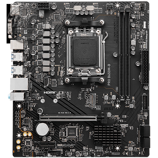 MSI Main Board Desktop PRO B650M-B (AM5, 2x DDR5, 1xHDMI, 1x VGA, 1x PCI-E x16, 1x PCI-E x1, 1x M.2, 4x SATA 6G, 6x USB 3.2 Gen1 Type A, 6x USB 2.0, 2.5G LAN) mATX