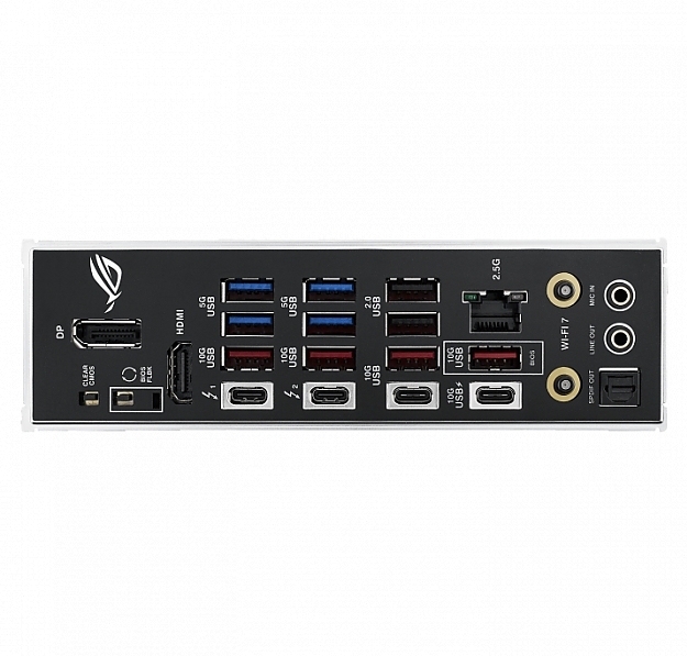 Интерфейс: 2 Thunderbolt 4, 6 USB 10Gbps ports, 4 USB 5Gbps ports, 2 USB 2.0 ports, DisplayPort, Intel 2.5Gb Ethernet port, 2 Gold-plated audio jacks, Optical S/PDIF out, BIOS FlashBack button, Clear CMOS button