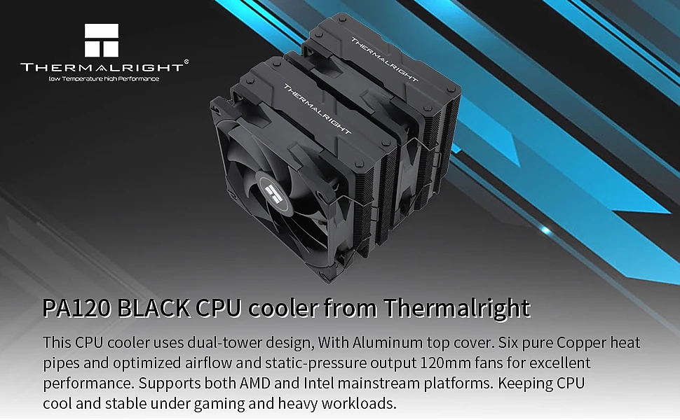 | ДОПЪЛНИТЕЛНИ | Dual Tower Layout 6 Anti-Gravity Heat Pipes Nickel Plated Soldered Copper Base TL-C12 High Performance Fan Premium Aluminium Cover Factory Calibrated Balance |