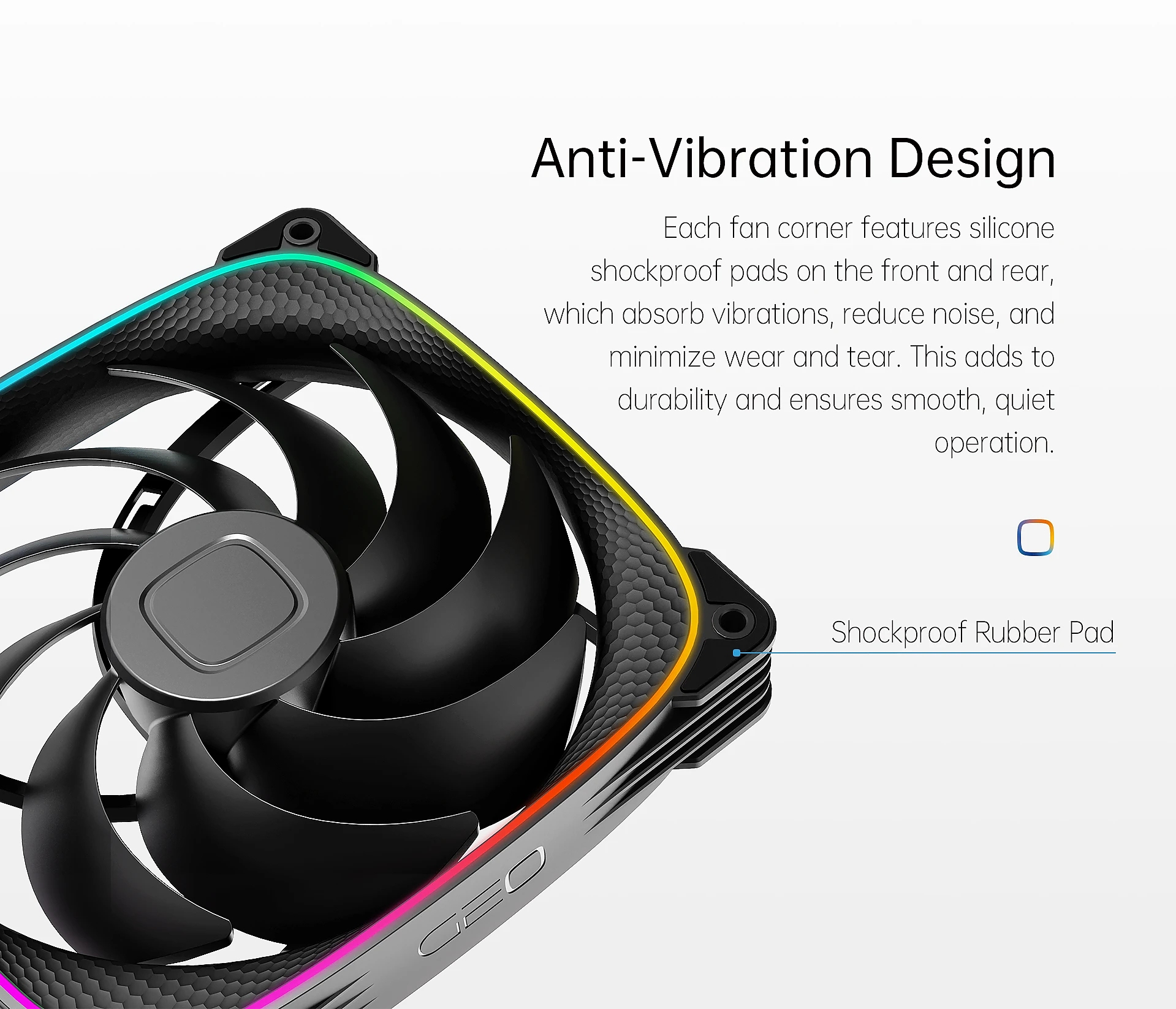 | ДРУГИ | High-performance quite fan Elegant and chic fine circle light effect Covered with aerodynamically streamlined dragon scale particles Compatible with Addressable RGB motherboard light sync Integrated PWM smart control Four-corner shockproof rubber pad Fine-tuned global dynamic balance for fan |