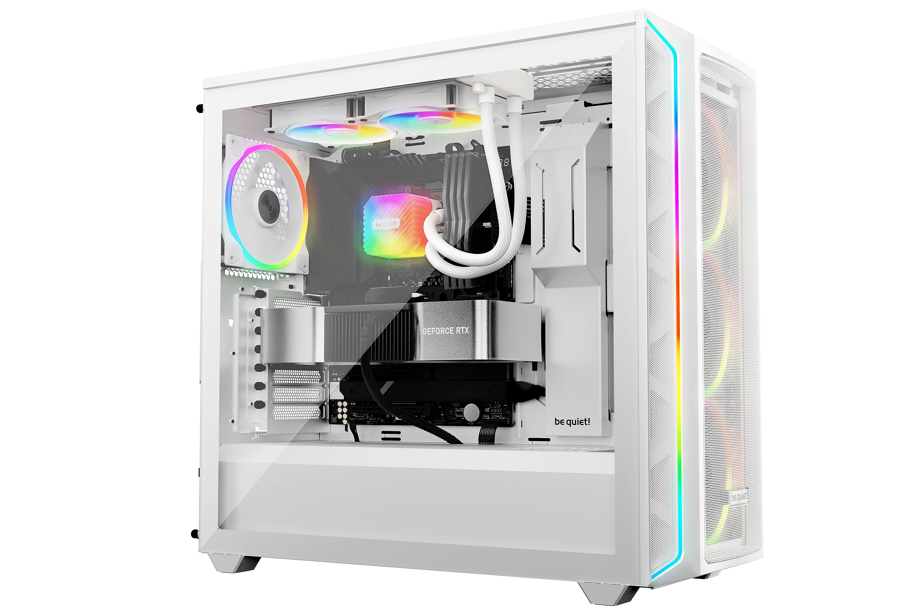 | ДОПЪЛНИТЕЛНИ | Stylish ARGB cooling block features lots of illumination options for stunning visual effects 2 Light Wings LX PWM high-speed fans for colorful and vibrant cooling State-of-the-art pump with progressive IC ARGB-PWM-Hub enables synchronization of up to 6 ARGB components and PWM fans Easy-to-access refill port and included coolant bottle for a long lifespan |