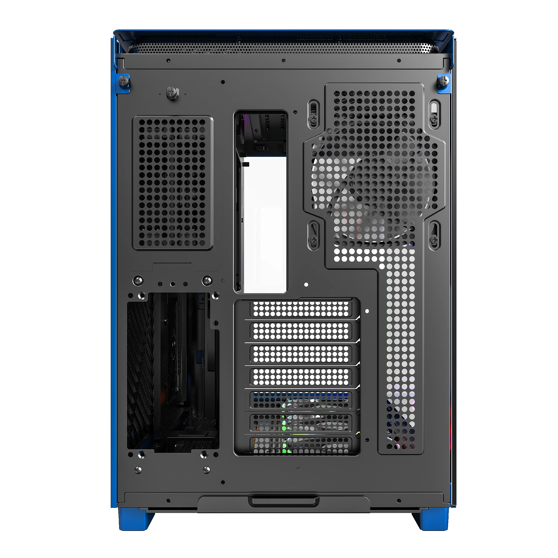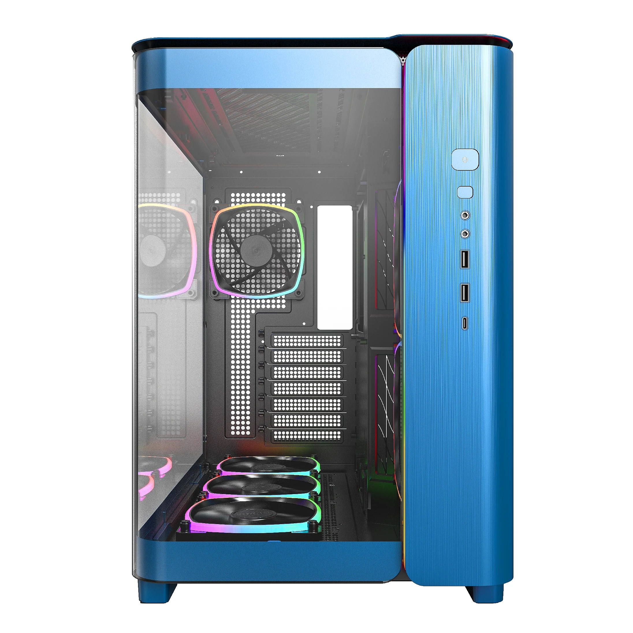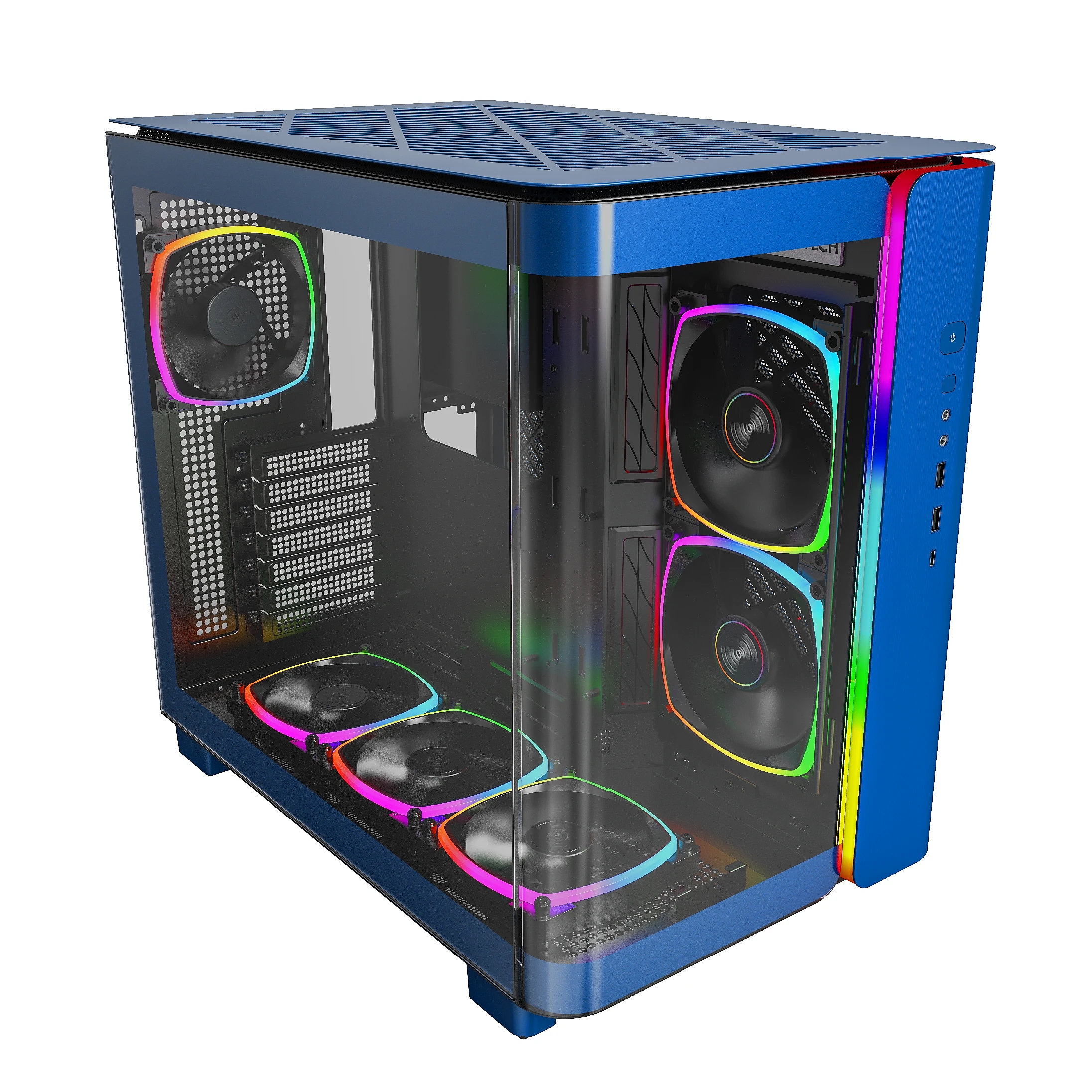 | ДОПЪЛНИТЕЛНИ | 2 Front Panels - Mesh & Glass 4mm Industrial-Grade Curved Glass Dual Power Supply capable 35mm of cable management space Dust Filters on 3 panels Structure thickness 0.8mm |
