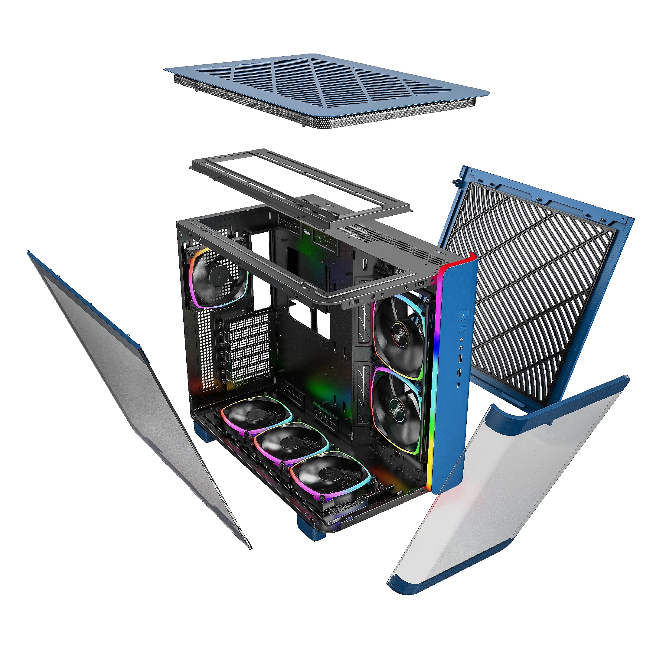 | ВКЛЮЧЕНИ ВЕНТИЛАТОРИ | Bottom: 3 x 120mm REVERSED ARGB Back: 1 x 120mm ARGB Side: 2 x 140mm REVERSED ARGB |