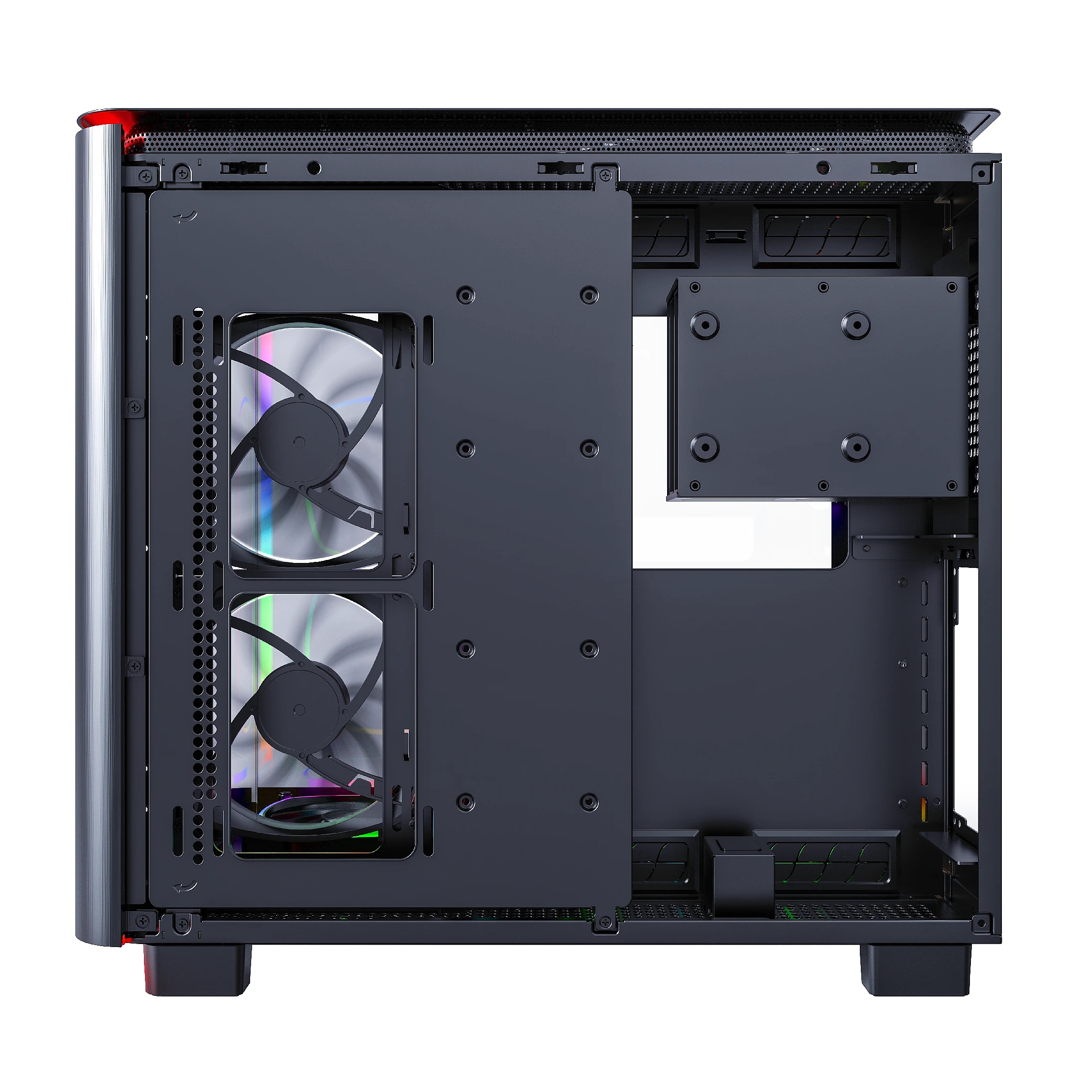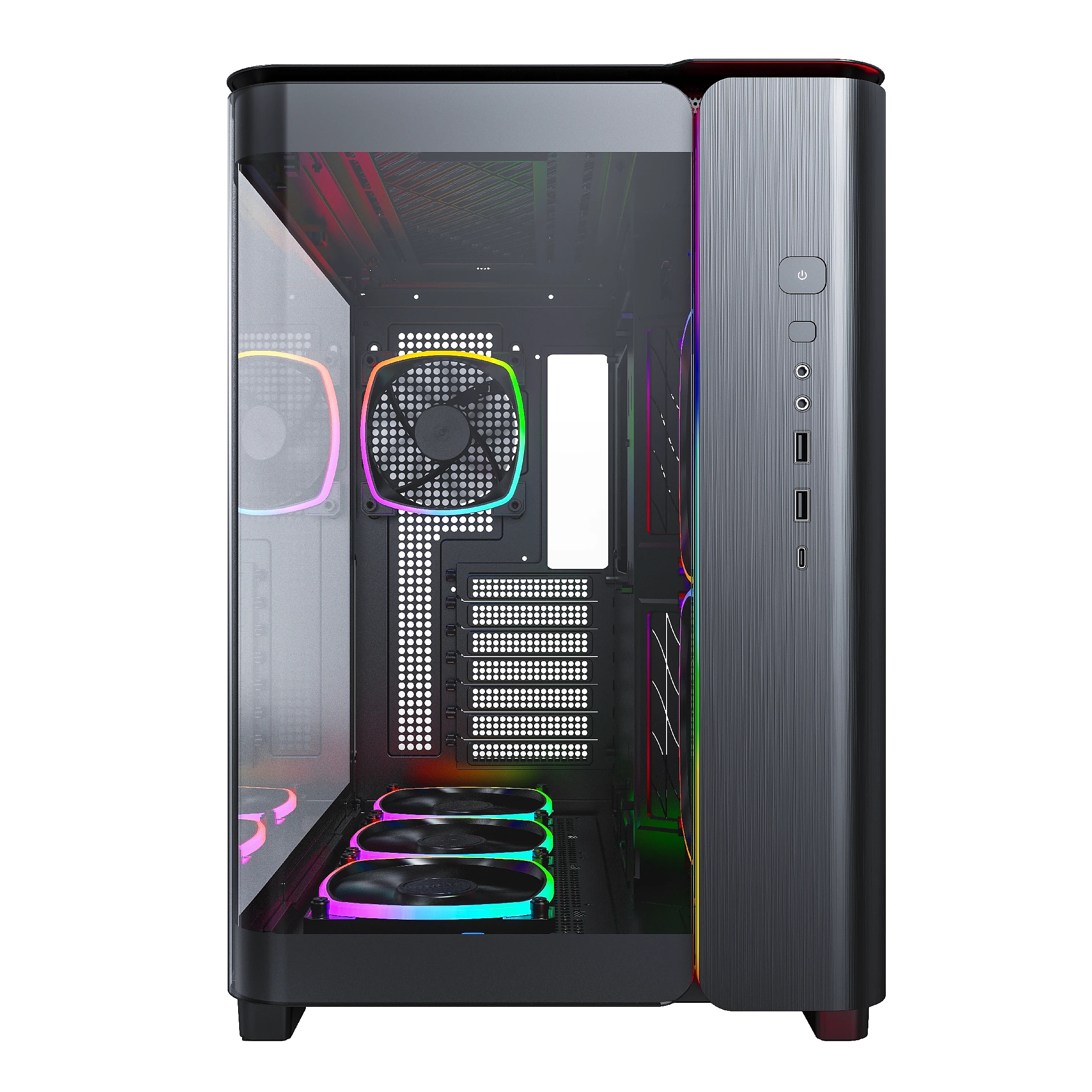 | ДОПЪЛНИТЕЛНИ | 2 Front Panels - Mesh & Glass 4mm Industrial-Grade Curved Glass Dual Power Supply capable 35mm of cable management space Dust Filters on 3 panels Structure thickness 0.8mm |