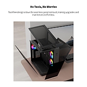 | ДОПЪЛНИТЕЛНИ | Built with premium 0.8mm thick steel Fan support up to 9 fans (3 Pre-installed) Top Panel " 60% of Mesh area Side Panel " 75% of Mesh area Storage Made Simple: Holds Up to 5 SSDs |