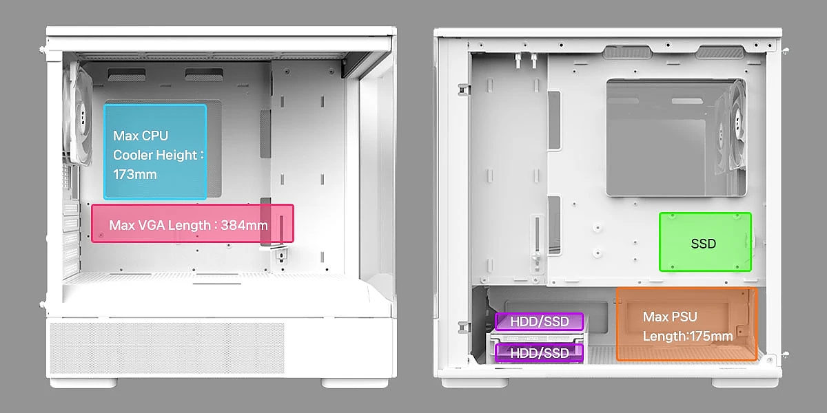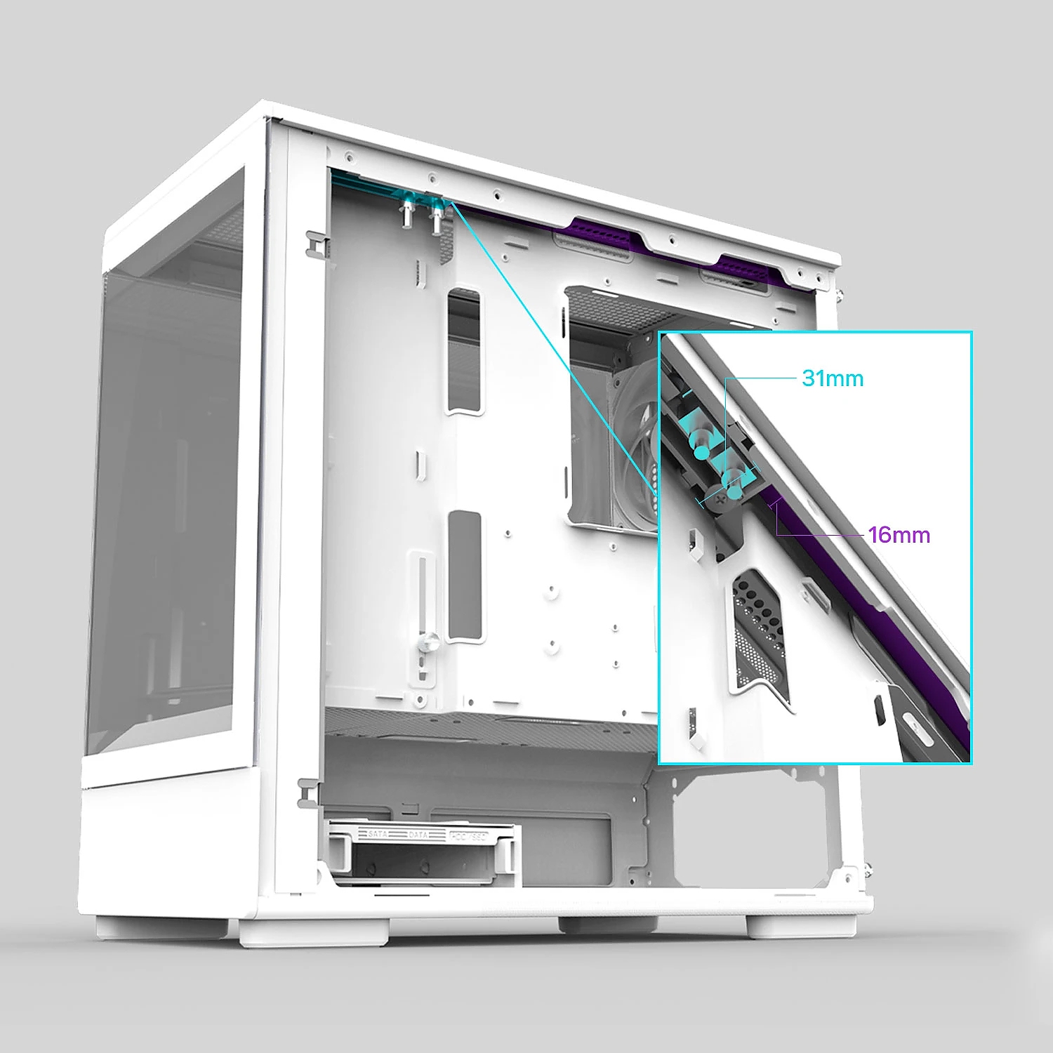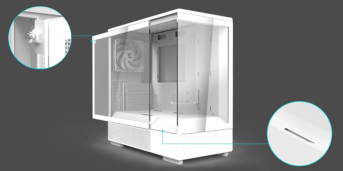| ДОПЪЛНИТЕЛНИ | Panoramic View Seamless Tempered Glasses USB-C Unrestricted Cooling Potential Tool-Free Tempered Glasses Top/Bottom Magnetic Dust Filter Zalman AF120 Annular Fan with Shark Fin Blades Intuitive Cable Management Layout |