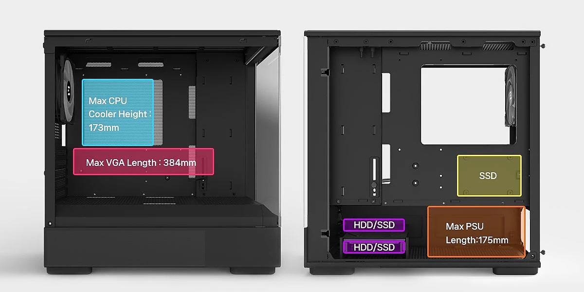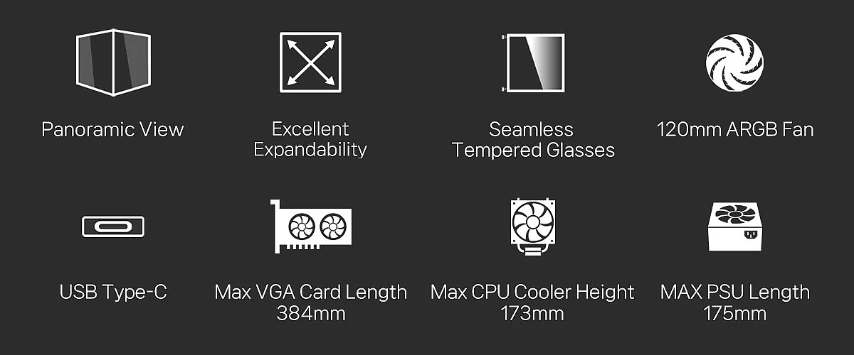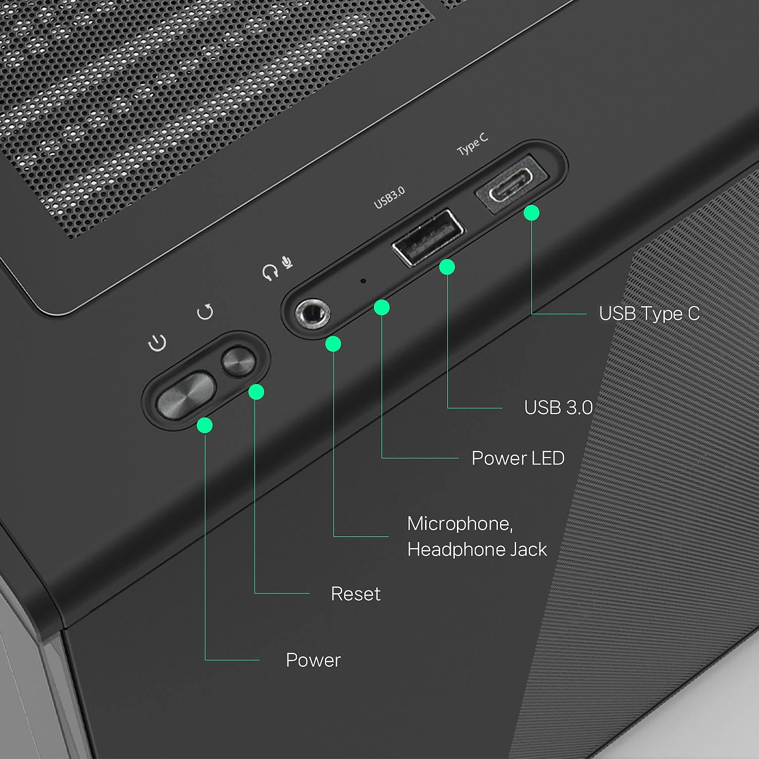 | ДОПЪЛНИТЕЛНИ | Panoramic View Seamless Tempered Glasses USB-C Unrestricted Cooling Potential Tool-Free Tempered Glasses Top/Bottom Magnetic Dust Filter Zalman AF120 Annular Fan with Shark Fin Blades Intuitive Cable Management Layout |
