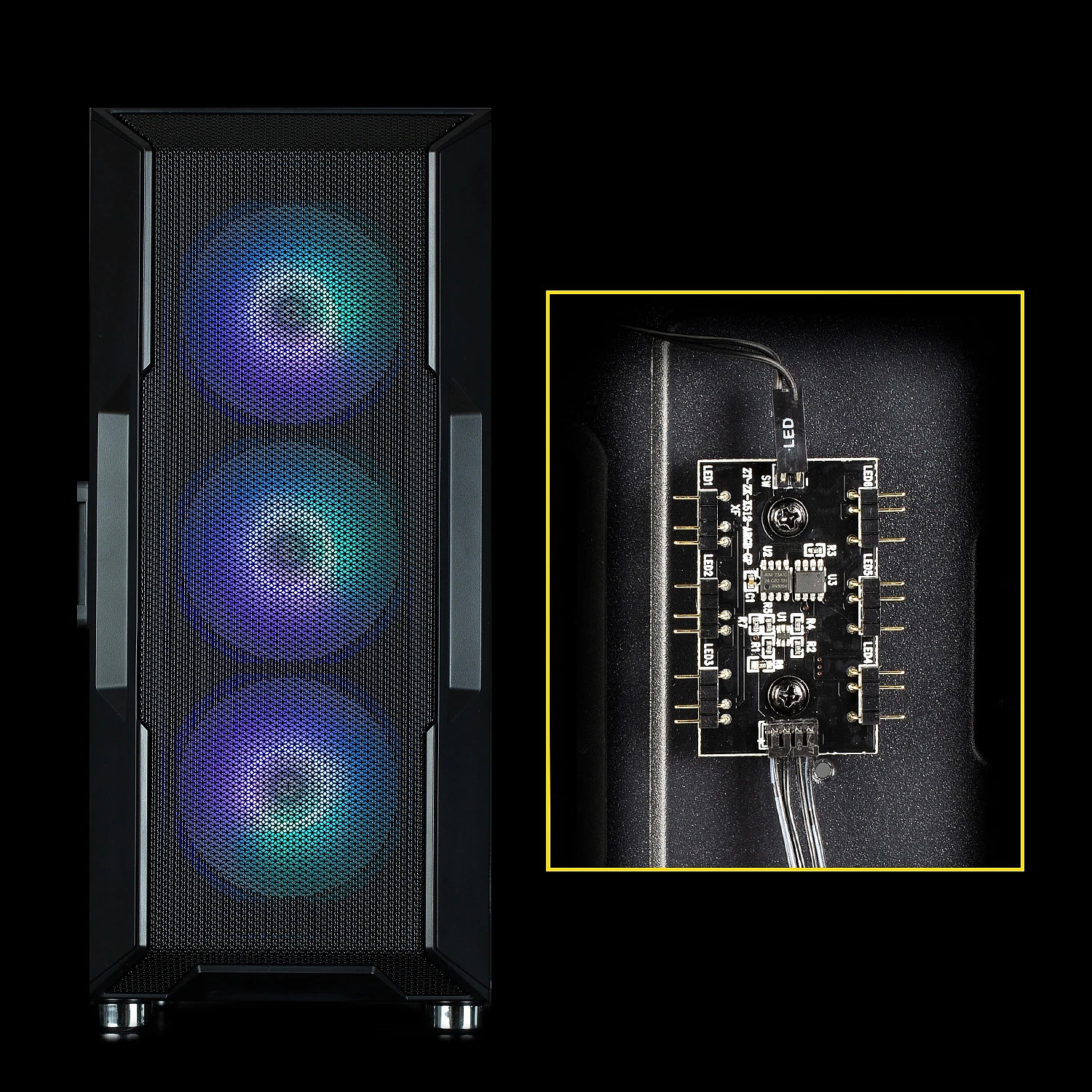 | ДОПЪЛНИТЕЛНИ | Front mesh panel High Cooling Performance Easy accessible design on top I/O ports Top and bottom magnetic dust filters Edgeless Premium Tempered Glass Side Panel Professional Cable Management ARGB CONTROLLER Maximum PSU Length: 210 mm |