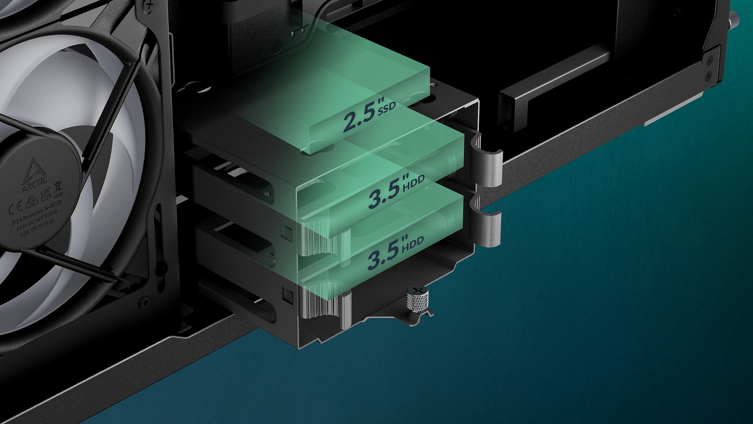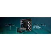| ДОПЪЛНИТЕЛНИ | Enables vertical GPU installation with a 160 mm PCIe Gen 4 riser cable Five pre-installed fans Compatibility for 120 or 140 mm Fans Supports Two 420 mm Radiators Magnetic Mesh Filters Flexible Mounting for Up to Six Drives Includes Accessory Box 3D Cable Pass-Throughs for Improved Aesthetics Clean Cable Management |