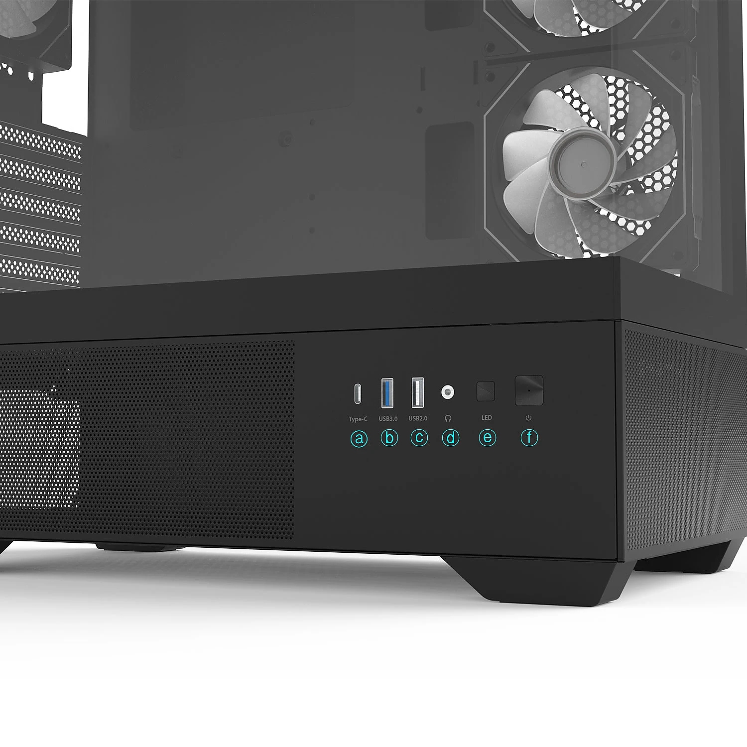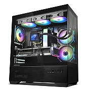 | ДОПЪЛНИТЕЛНИ | Modern & Sleek Design Panoramic View With Seamless Tempered Glass Panels Tool-Free Glass Panels Optimal Airflow Pre-installed ARGB Infinity Mirror Fans Mesh Bottom Panels 6-port PWM/ARGB hub |
