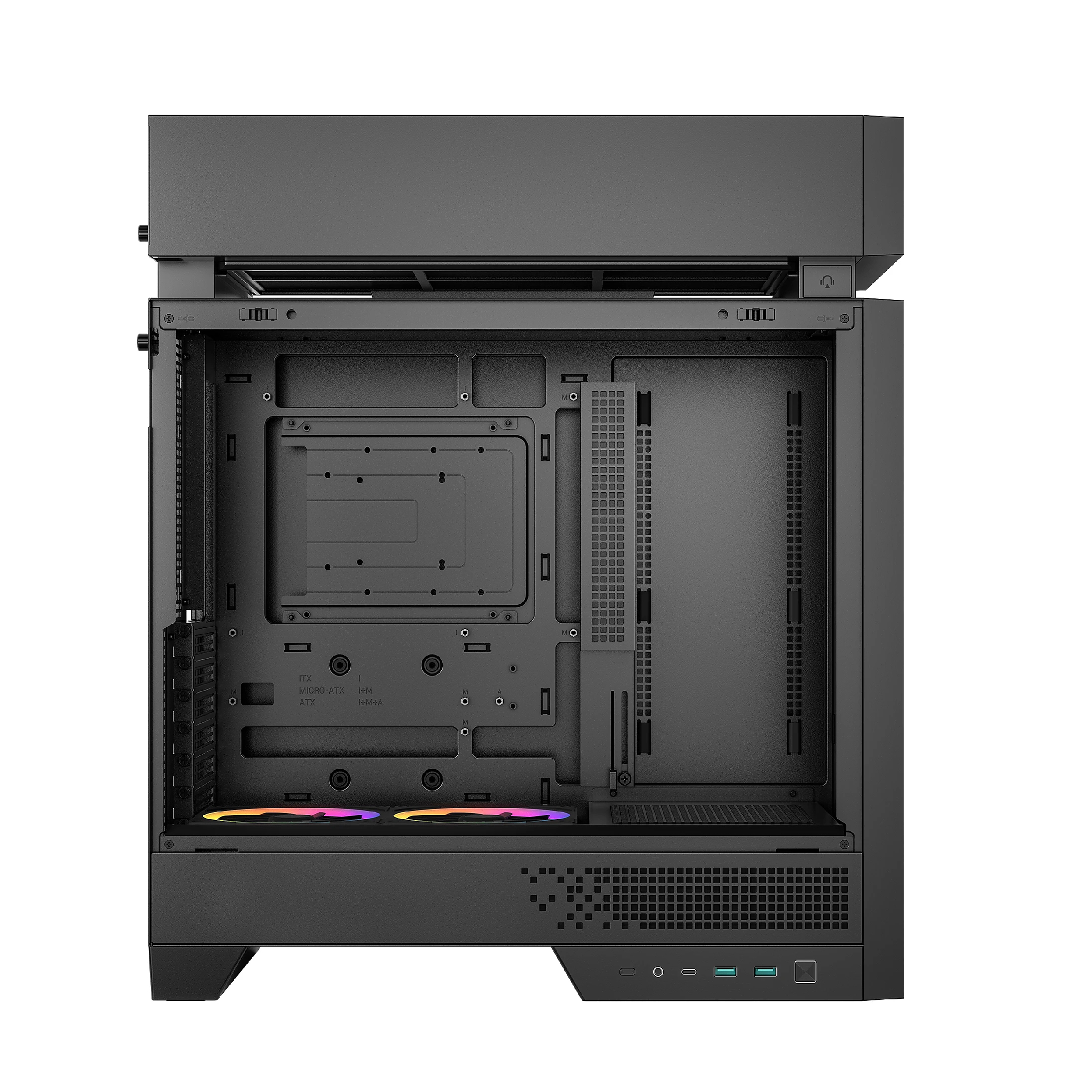 Pre-installed and smartly recessed, the dual FL12R SE fans at the bottom