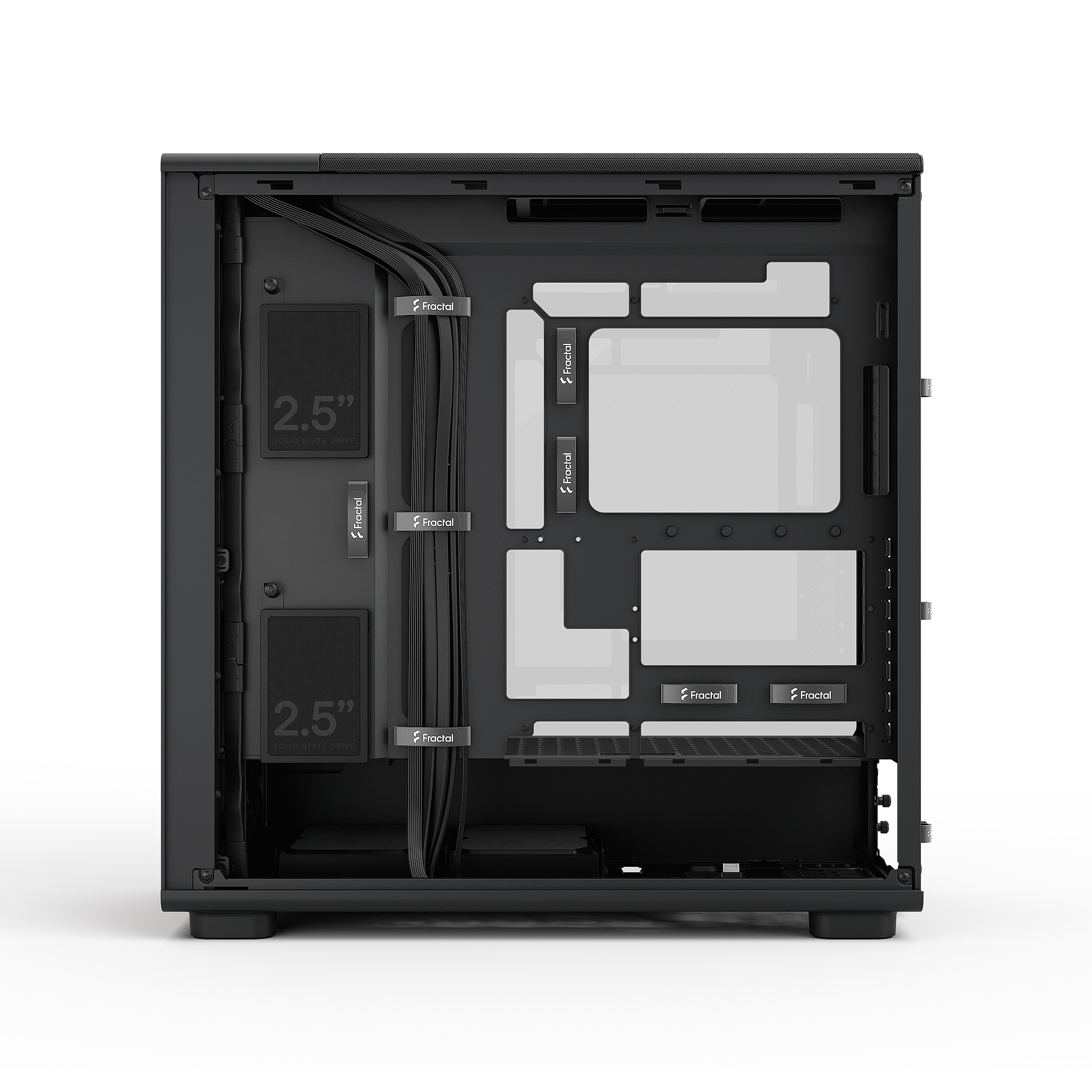 Slots for devices: 3.5"/2.5" drive mounts: 2 (2 included);Dedicated 2.5" drive mounts: 2 (2 included);Power supply type: ATX;Motherboard compatibility: Front-facing connectors: E-ATX up to 275 mm/ATX / mATX / ITX Rear-facing connectors: ATX / mATX;PSU max length: 1 HDD Tray: 290 mm max 2 HDD Tray: 175 mm max;GPU max length: 425 mm with front fan mounted / 395 mm with front-mounted radiator;CPU cooler max height: 176 mm;Front radiator: Up to 280/360 mm;Top radiator: Up to 280/360 mm;Rear radiator: 1x 120 mm