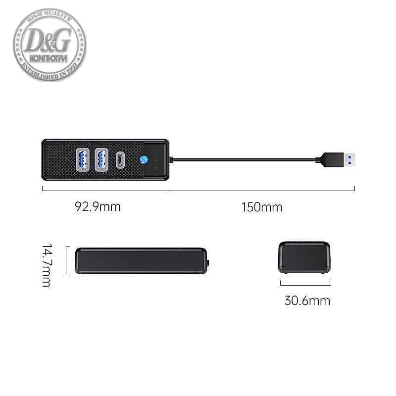 Orico хъб HUB USB3.0 3 port - 2 x USB3.0, 1 x Type C, Black - PWC2U-U3-015-BK