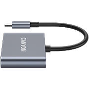 Canyon Laptop stands with hub, TYPE C F to HDMI2.0+2USB3.0+USBC3.0+RJ45+PD, TYEP C TO C cable 1m white with Emarker: HUSB332A, Material: Aluminum case+ABS+PS, Size: 245x240x27.2+/-0.3mm, Weight:1304g