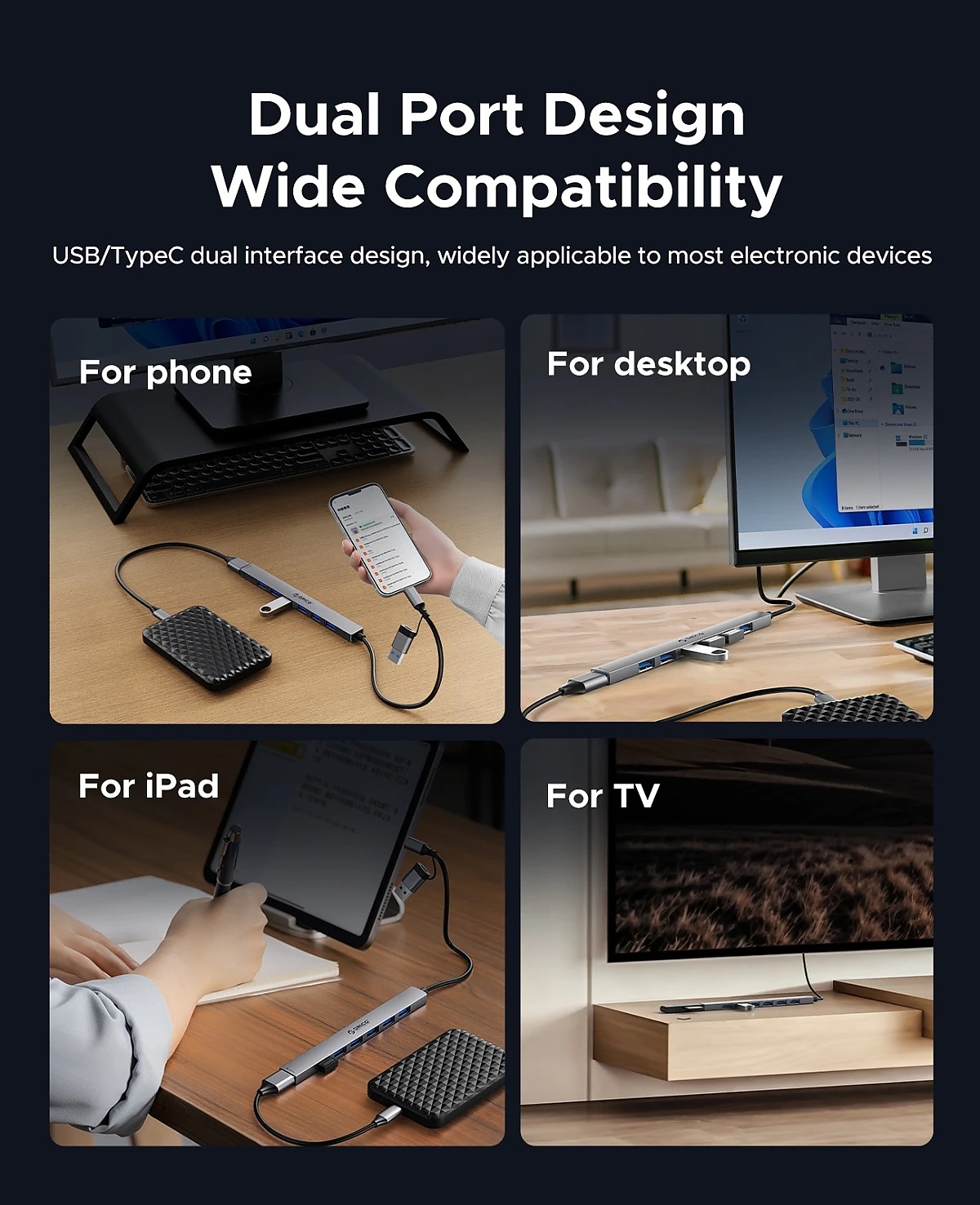 Canyon Laptop stands with hub, TYPE C F to HDMI2.0+2USB3.0+USBC3.0+RJ45+PD, TYEP C TO C cable 1m white with Emarker: HUSB332A, Material: Aluminum case+ABS+PS, Size: 245x240x27.2+/-0.3mm, Weight:1304g