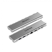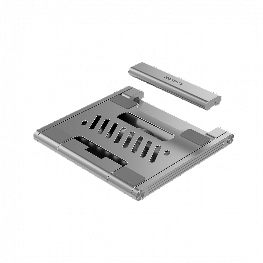 Canyon Laptop stands with hub, TYPE C F to HDMI2.0+2USB3.0+USBC3.0+RJ45+PD, TYEP C TO C cable 1m white with Emarker: HUSB332A, Material: Aluminum case+ABS+PS, Size: 245x240x27.2+/-0.3mm, Weight:1304g