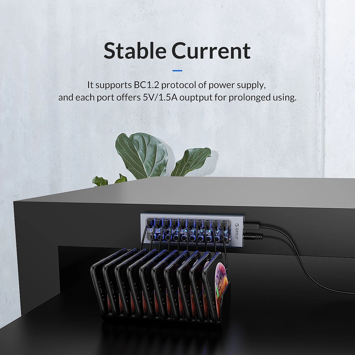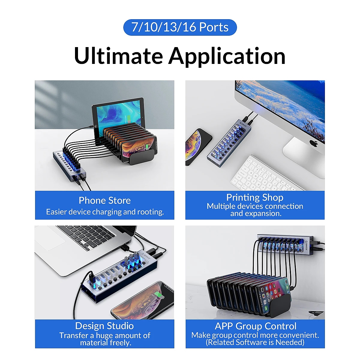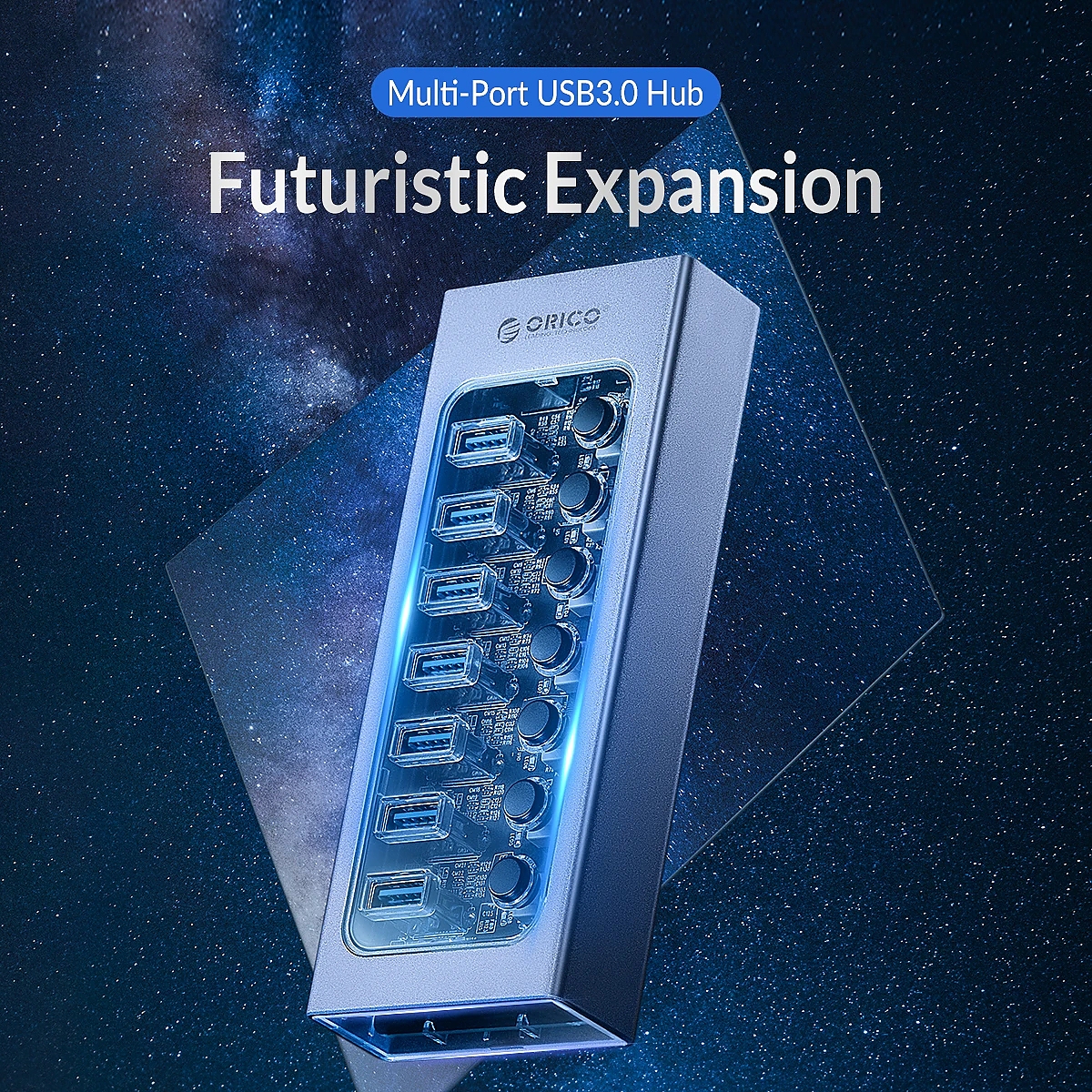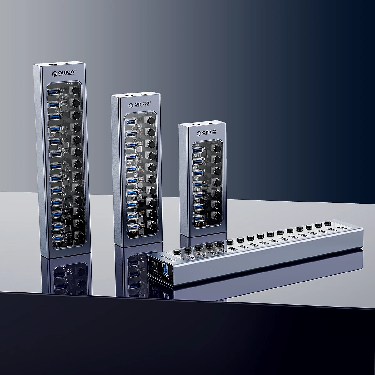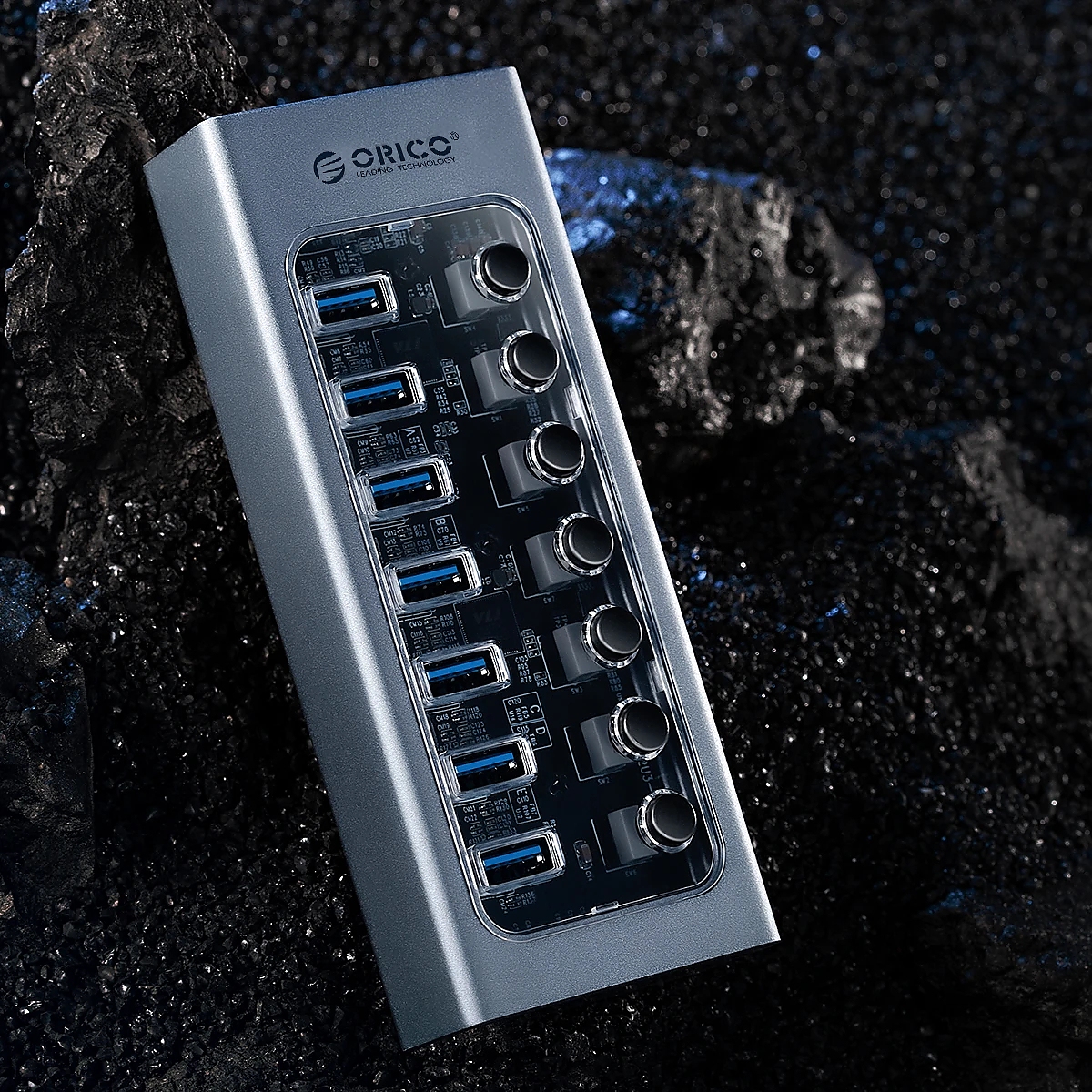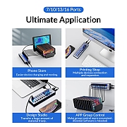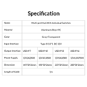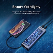 Orico хъб USB3.0 HUB 7 port with Power Adapter, On/Off buttons, Aluminium - AT2U3-7AB-EU-GY