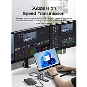 AXAGON HMC-8HLSA USB-C 3.2 Gen 1 hub, 3x USB-A + 4K/30Hz HDMI + SD/microSD, GLAN, Audio, PD 100W, 20cm USB-C cable