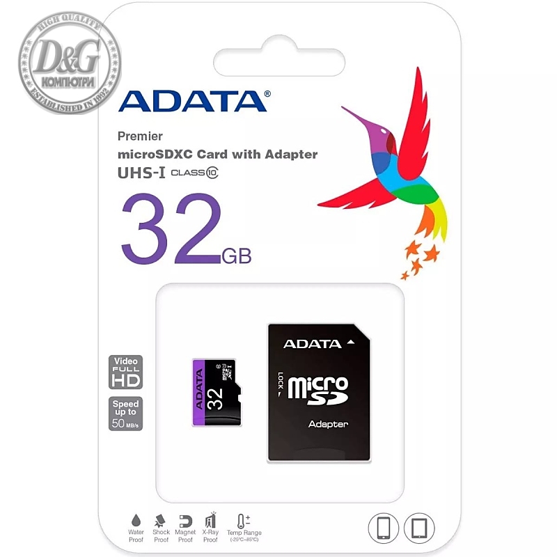 ADATA 32GB MicroSDHC UHS-I CLASS 10 (with adapter)